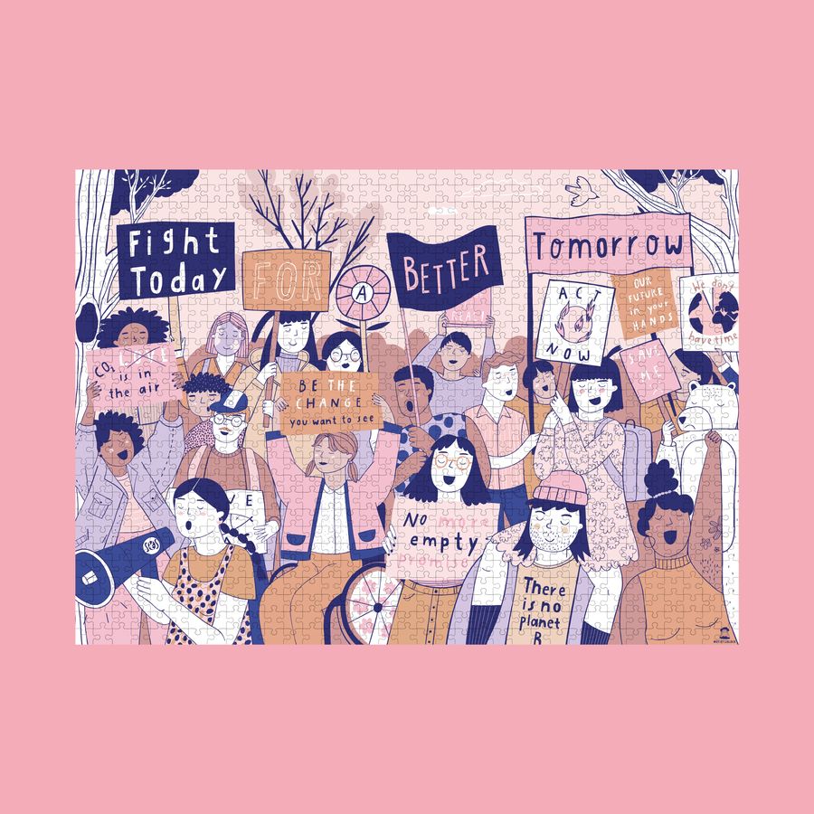“Not only will it be beautiful and cool, it will also be feminist, diverse and sustainable. With Jill Senft, Laura Breiling, Slinga, Ayşe Klinge, Rinah Lang, Haley Tippmann, Stephanie Wunderlich and Notietzblock, we were able to attract creative, ambitious and renowned illustrators who bring current motifs to the puzzle mat with unmistakable styles and strong statements. And all of this is produced sustainably and in the highest quality in Germany.”