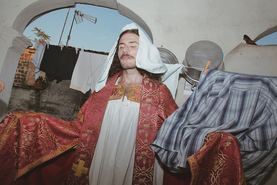 A KALTBLUT exclusive. The model is Cristiano Sansone signed at Persona Milano. Photography by Antonino De Lellis. Creative direction and styling by Pablo Andreozzi. Fashion Brands used are Calvin Klein and handmade craft items. The producer is Giuseppe Pannone.