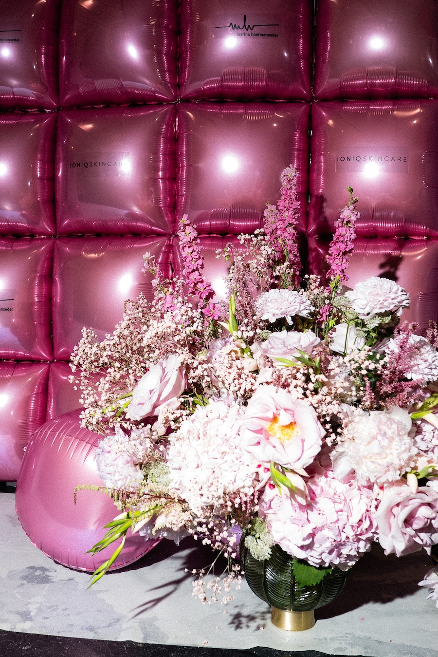 True to Marina’s signature style, the entire venue was drenched in pink, from the cocktail fountain to the three-course menu and all the decorative details.