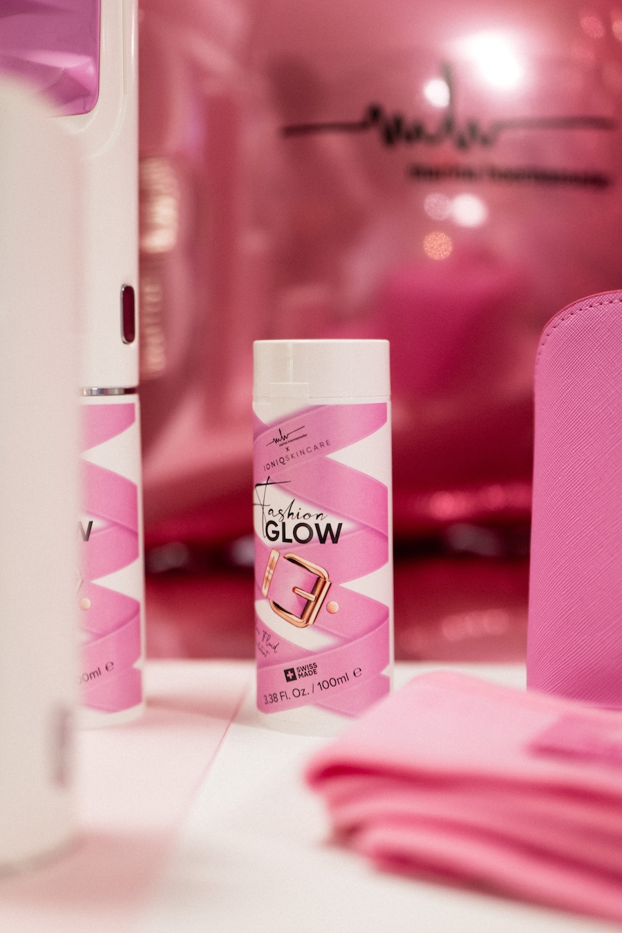 This vibrant hue is also the hallmark of the limited edition collaboration between IONIQ Skincare and Marina Hoermanseder. In this extraordinary partnership, the two have created the Fashion GLOW Limited Edition, boldly merging the worlds of fashion and skincare. Just as IONIQ Skincare revolutionises the skincare experience through innovative technology, Marina Hoermanseder redefines design—boldly feminine, powerful, and transformative.
