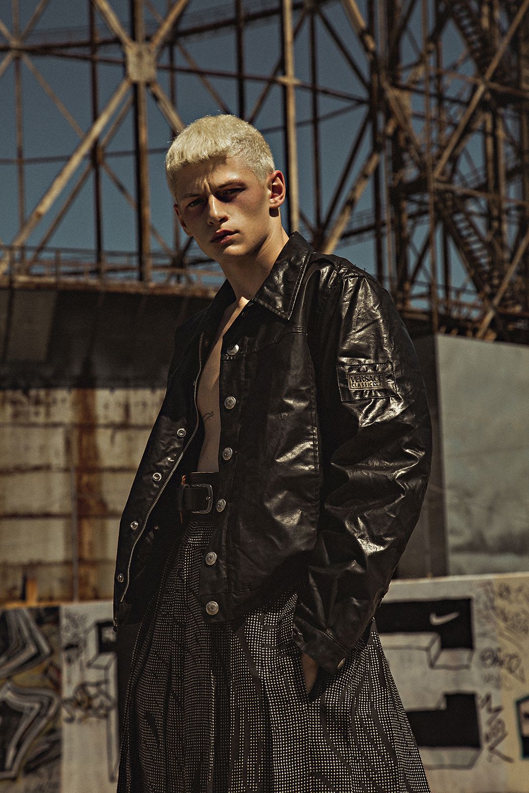 A KALTBLUT exclusive menswear editorial. Photography by Mirko Morelli. Styling by Francesca Romana Audino. Model is Lorenzo Bigi signed at Guys Agency. Make up by Sara Beccarini. Fashion by Versace, Stussy, Drole de Monsieur, ASOS, Bershka, Reebok just to name a few.