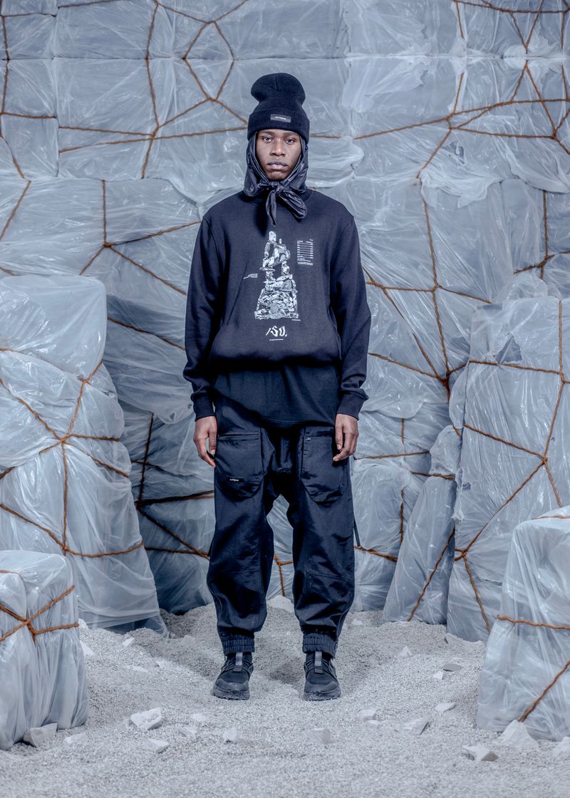 With a direct arcane reference to Tobias’ personal life, the collection’s uncompromising compositions, graphics, and tactile dyings, attracts references from several emotional aspects within being a modern human, climbing mental and psychological mountains.