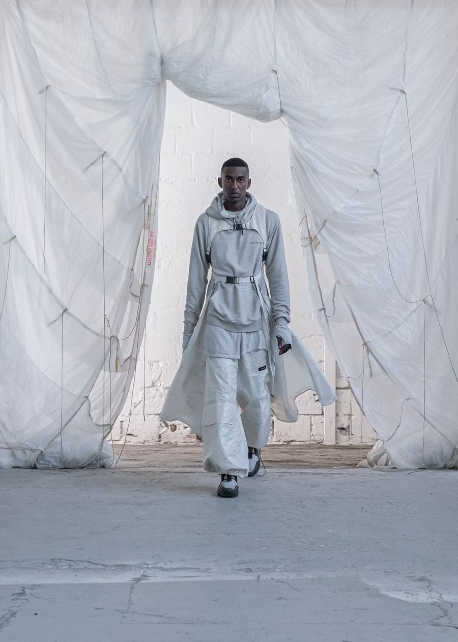 As the brand’s signature ‘HABITUAL HAVOC’ contains the highest quality materials and trimmings from Italy & Korea. The SS22 offers adjustable silhouettes, intentional details and the opportunity to style the garments according to personal preference. The collection re-introduces the high-tech tactile details and hand-made dyeing techniques bringing the universe to new technicality levels.