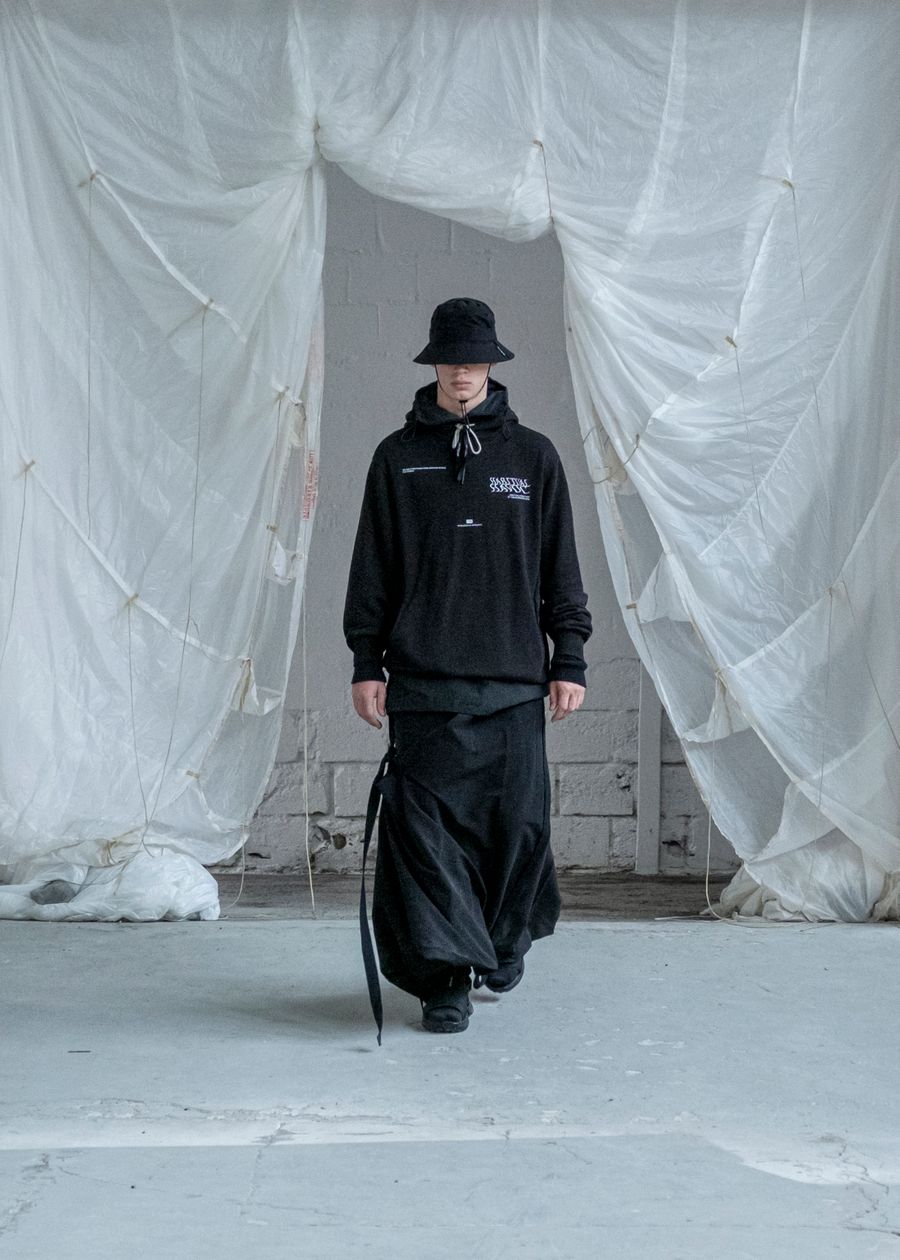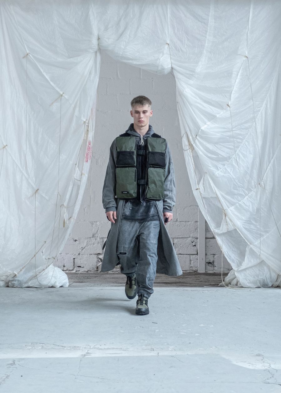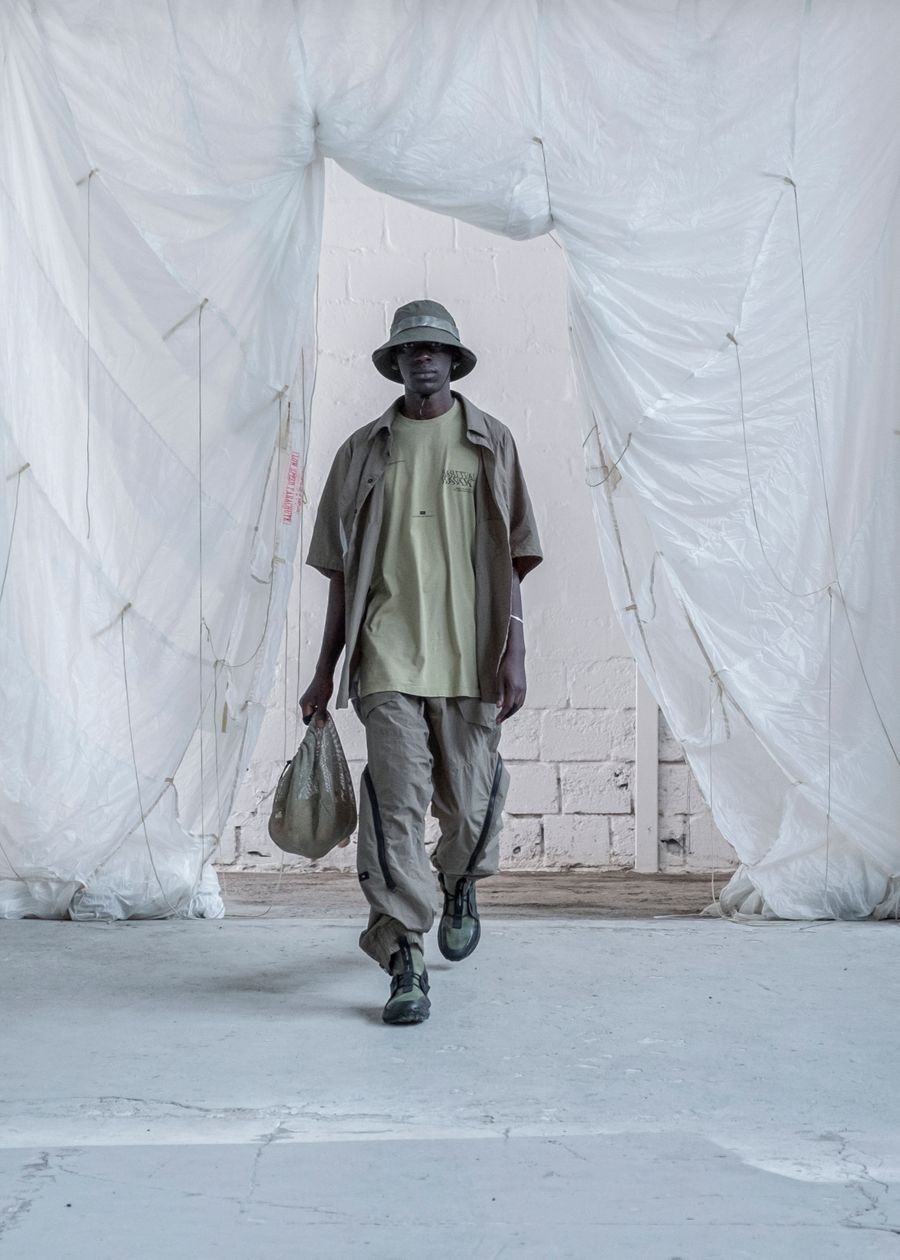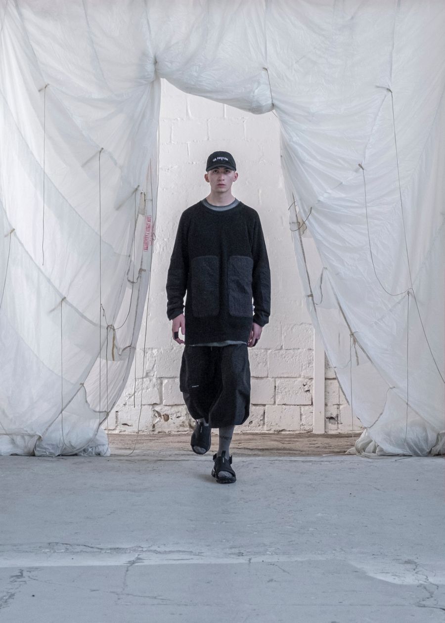 As the brand’s signature ‘HABITUAL HAVOC’ contains the highest quality materials and trimmings from Italy & Korea. The SS22 offers adjustable silhouettes, intentional details and the opportunity to style the garments according to personal preference. The collection re-introduces the high-tech tactile details and hand-made dyeing techniques bringing the universe to new technicality levels.