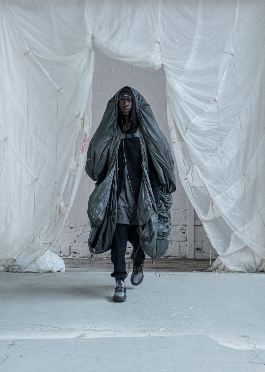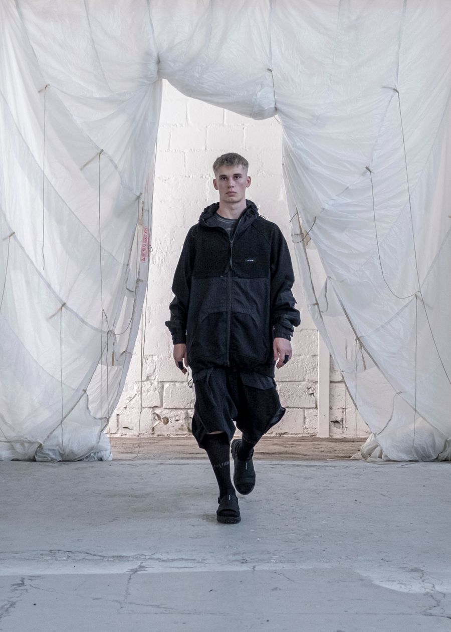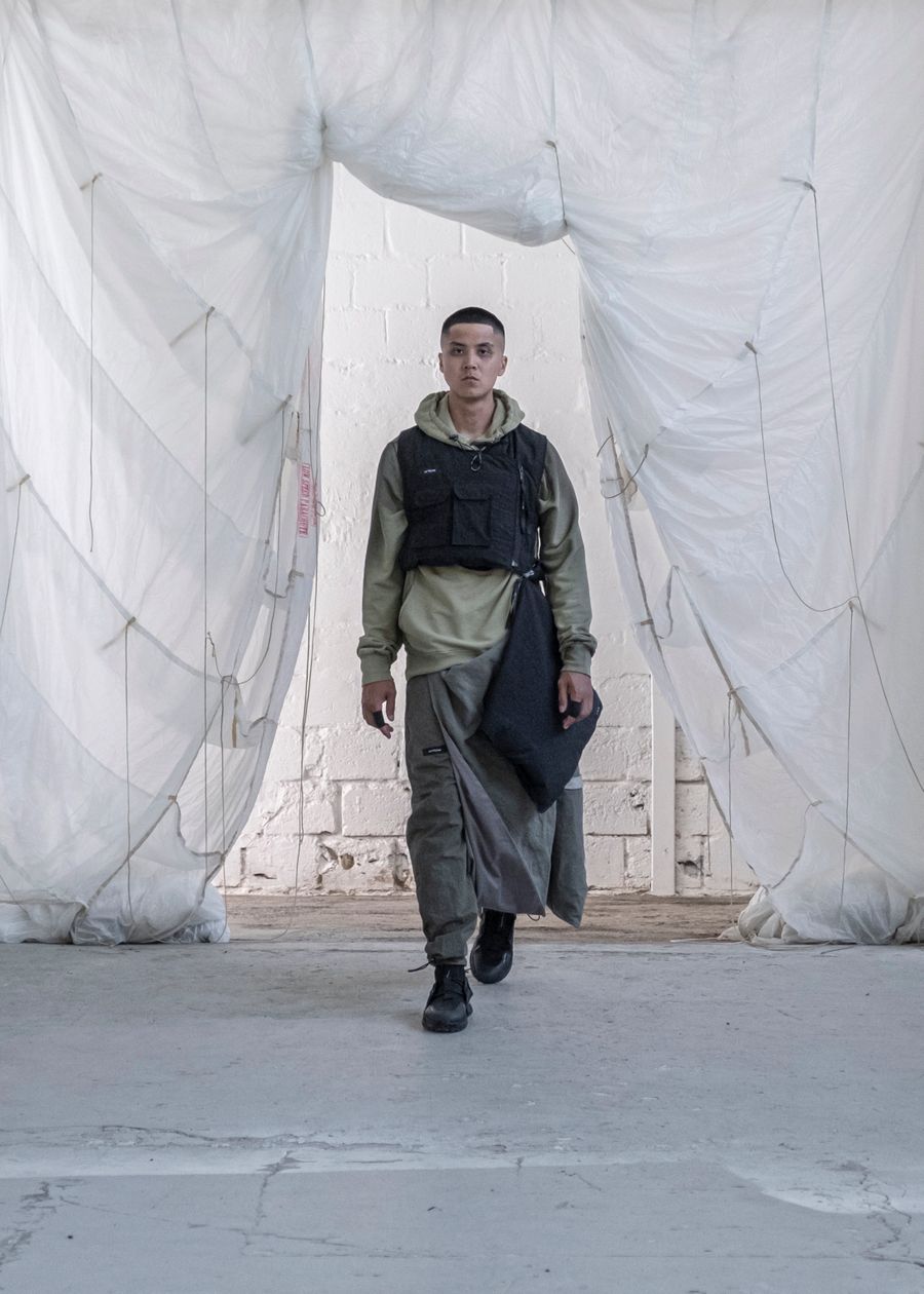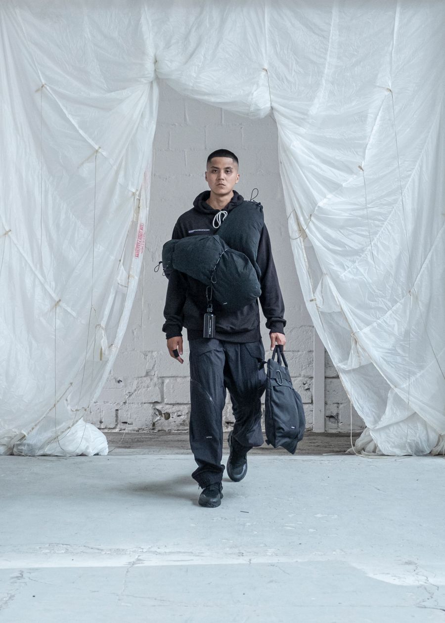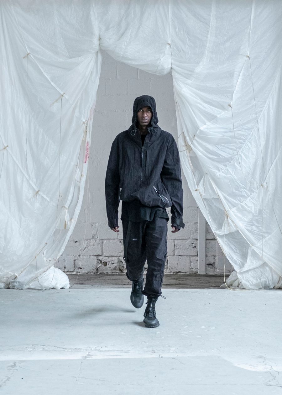 As the brand’s signature ‘HABITUAL HAVOC’ contains the highest quality materials and trimmings from Italy & Korea. The SS22 offers adjustable silhouettes, intentional details and the opportunity to style the garments according to personal preference. The collection re-introduces the high-tech tactile details and hand-made dyeing techniques bringing the universe to new technicality levels.