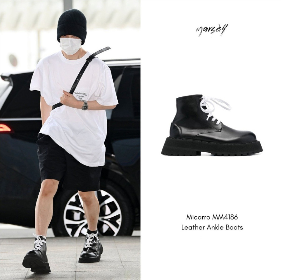 Making a Fashion Statement at the ICN Airport! Renowned K-Pop sensation Jimin has once again set the fashion world abuzz by donning the exquisite Micarro Boots from the prestigious Italian brand, Marsèll. With an effortless flair, Jimin captured the attention of onlookers as he graced the ICN Airport in South Korea. Revered for his impeccable fashion sense, it comes as no surprise that Jimin chose to showcase his inimitable style through the refreshing shoes offered by Marsèll.