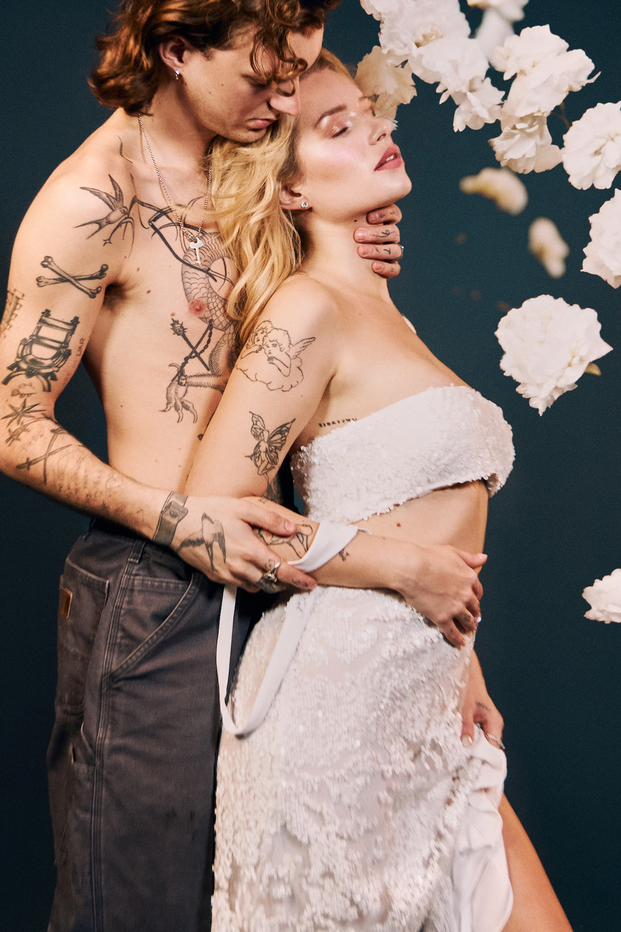 A KALTBLUT exclusive. Photography & Creative Direction by Rebecca Alison. The models are Lottie Moss & Jay. Hair and makeup by Vodka. Styling by Sophia Musmar using Lamara London, The Attico, Atsuko Kudo, Poster Girl, Paris Texas, Guess, and Heavenly London.