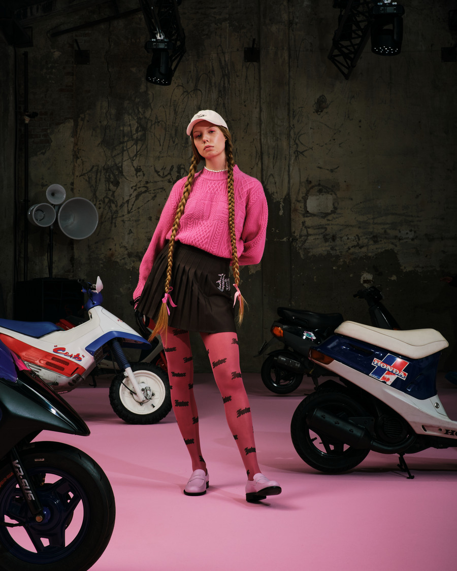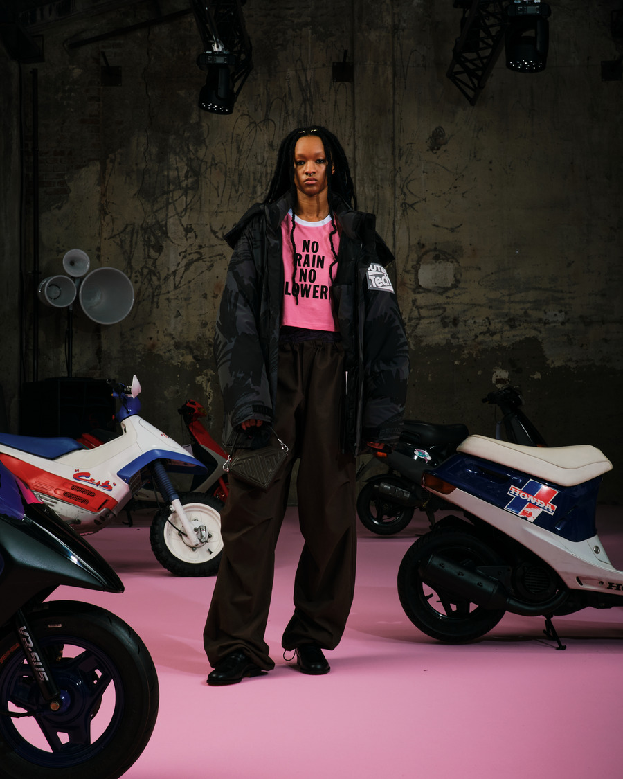 For the first time, IUTER introduces a series of women’s garments and accessories, including jewellery and a logo bag, while pushing iconic staples, from finest leather garments and allover logo puffers to double knees and other workwear-inspired items.