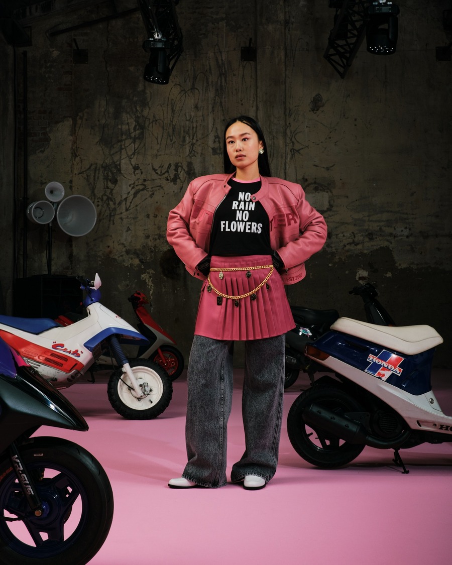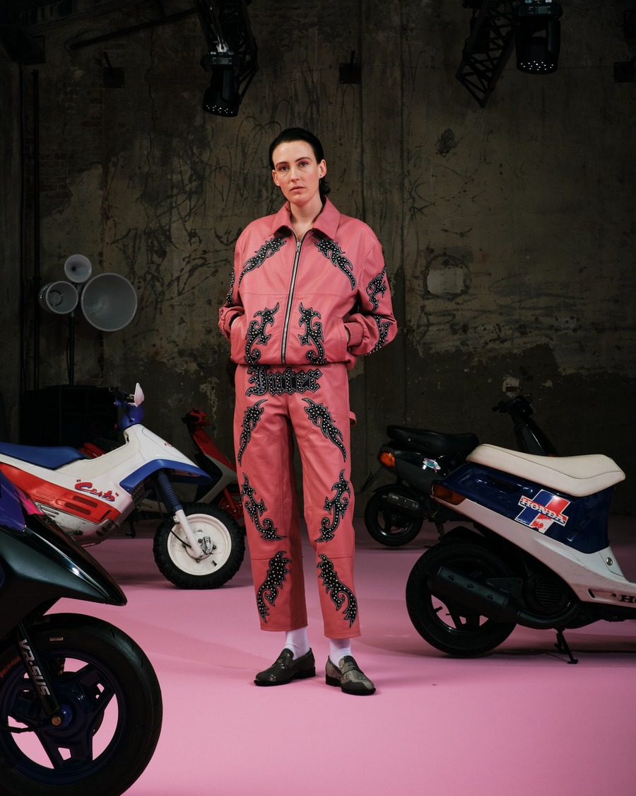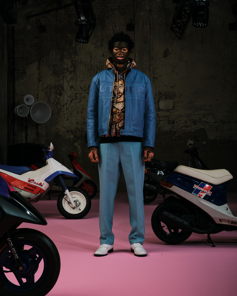 For the first time, IUTER introduces a series of women’s garments and accessories, including jewellery and a logo bag, while pushing iconic staples, from finest leather garments and allover logo puffers to double knees and other workwear-inspired items.