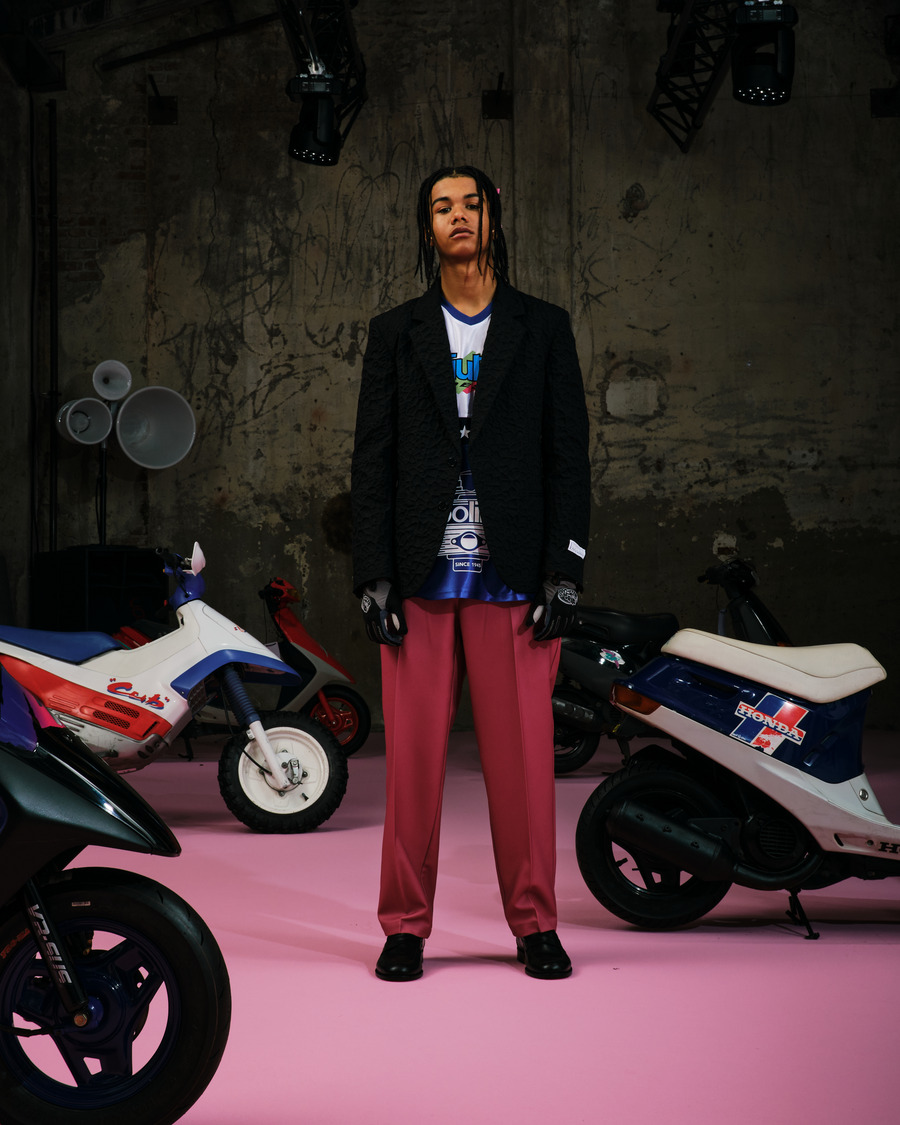 Established in 2002 and shaped from the start as an ever-growing community, IUTER is an independent clothing brand from Milan rooted in the urban subcultural landscape, moving beyond its original context by reconciling the irony, playfulness, and experimental nature of its roots with the art and refinement of Italian tailoring. The FW23 IUTER Spirit collection is the first drop from ‘IUTER Collezione’, a premium selection marked by meticulous attention to detail and available for a small circle of selected retailers.