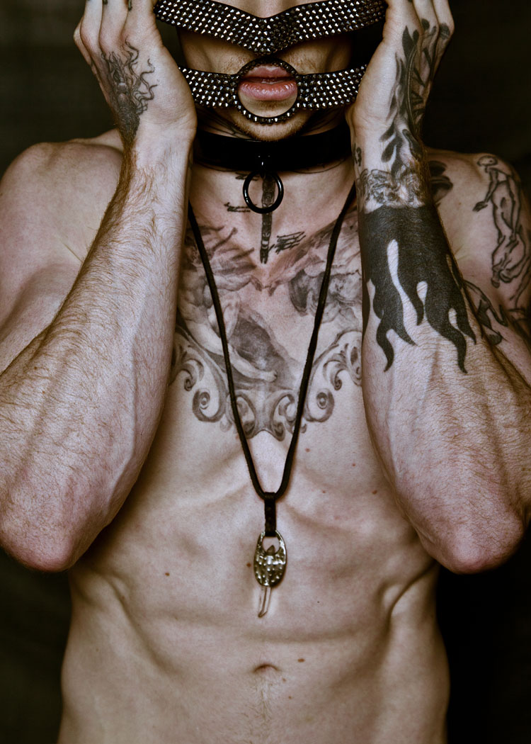 A KALTBLUT exclusive menswear editorial. Photographer Scallywag Fox lensed Jake Hold signed to AMCK Models for us. Styled by Lidlbillionaire using items by Curbwear, Sweet n’ Twisted, World of Welford just to name a few. Hair and make up by Paul Rodgers. Scallywag Fox was born in Stoke-on-Trent, a city located between Manchester and Birmingham in the UK. After graduating from Staffordshire University he moved to the capital and has been living and working as a fashion and portrait photographer in East London for 10 years. His personal work is often centred around queer culture and the blurring of gender barriers as well as exploration of sexuality. More can be seen at www.scallywagfox.com the pseudonym he uses to help preserve his fantasy world. His style takes inspiration from baroque painters such as Caravaggio in terms of subject and lighting. For the ‘Cult of Beauty’ series he recreated many traditional paintings adding modern elements and anachronisms which comment on our reliance upon technology and the selfie generation. In this shoot, exclusively for Kaltblut, he captures model Jake Hold as if he were a model posing for his portrait in the painters studio. The modern bondage styling by Lidlbillionaire and hair and makeup by Paul Rodgers bring the images into our present day with a feeling of danger and an invitation to take part.