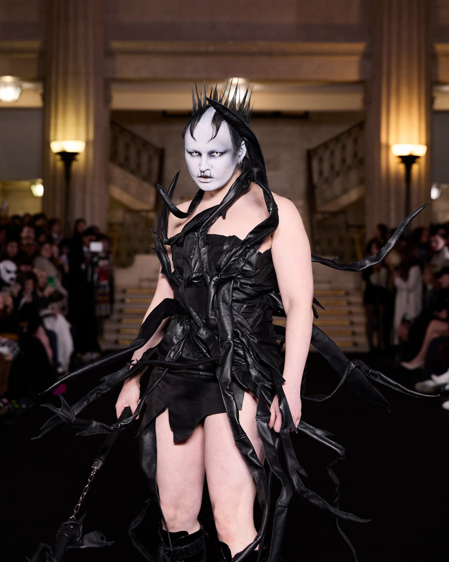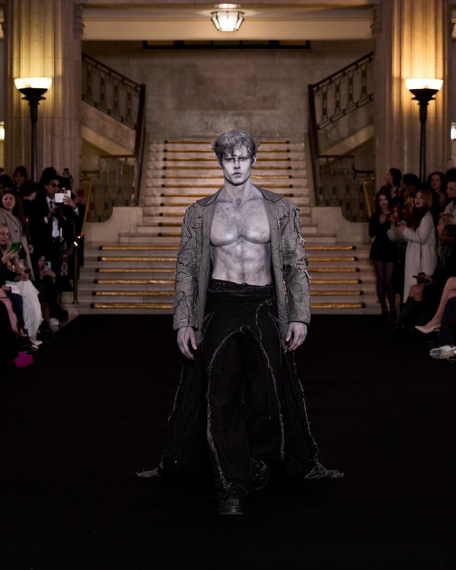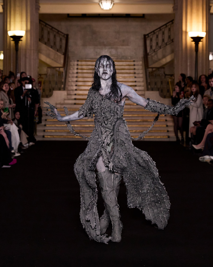 In “Epitaph,” Jean Louie Castillo gives us a fashion show that’s part elegy, part haunting performance—a monstrous, beautiful tribute to love, loss, and everything in between. A whisper of words left unspoken, a love that lingers like a ghost in the shadows. This collection is not just fashion; it is a portal to a world where every stitch holds a story, where grief and beauty exist in the same breath, and where the power of self-expression knows no earthly bounds.