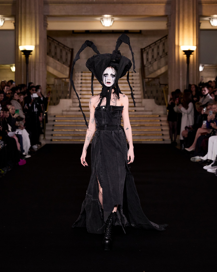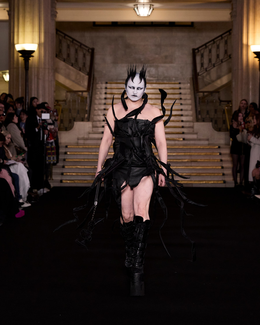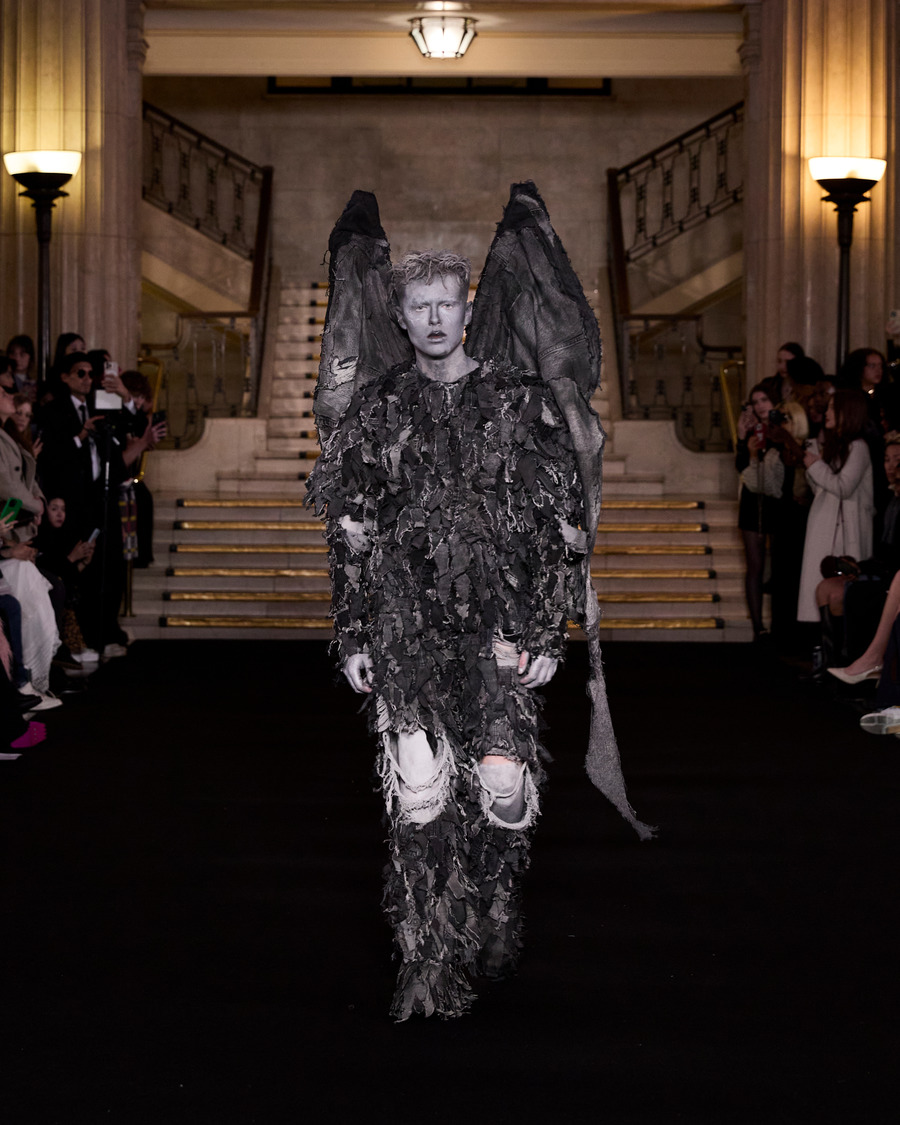 In “Epitaph,” Jean Louie Castillo gives us a fashion show that’s part elegy, part haunting performance—a monstrous, beautiful tribute to love, loss, and everything in between. A whisper of words left unspoken, a love that lingers like a ghost in the shadows. This collection is not just fashion; it is a portal to a world where every stitch holds a story, where grief and beauty exist in the same breath, and where the power of self-expression knows no earthly bounds.