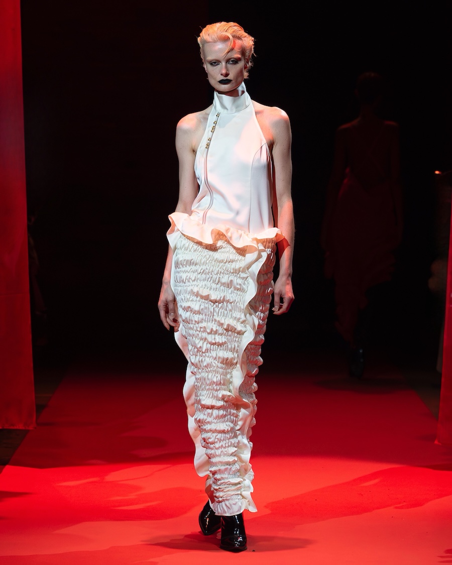 Kicking off the show with a live performance by contemporary dancer Liu I-Ling, whose movement and mood mirrored the vulnerability of the pieces in the collection, two looks in particular were literally made by a qipao master and had everyone gagging. Starched shapes, hand-tied knot buttons, seams cleaner than your FYP feed. Traditional? Sure. But Lee twisted those details into something that screamed rebellion while still dripping elegance.