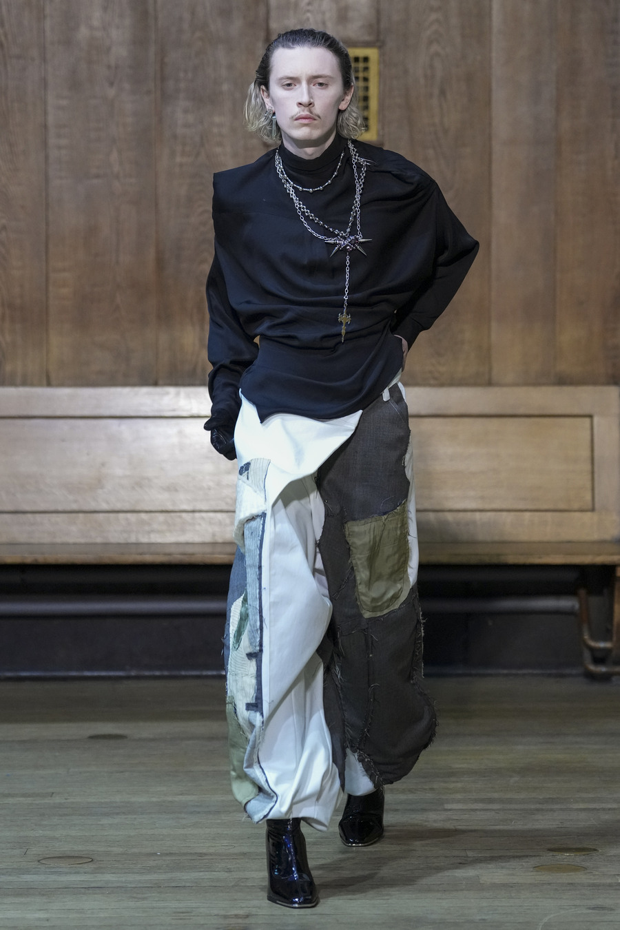 JENN LEE’s creative process? She literally crumpled up paper and let the wrinkles and shapes do the talking! Her designs came to life with unstructured silhouettes, funky geometric shapes, and brushstrokes that looked like they were applied with a sense of who cares, let’s have fun! Styled by Callum Smith, the collection still had JENN LEE’s signature deconstructed coolness, but this time with playful folds, exposed seams, and her iconic heart-shaped zippers. Structure, meet spontaneity.