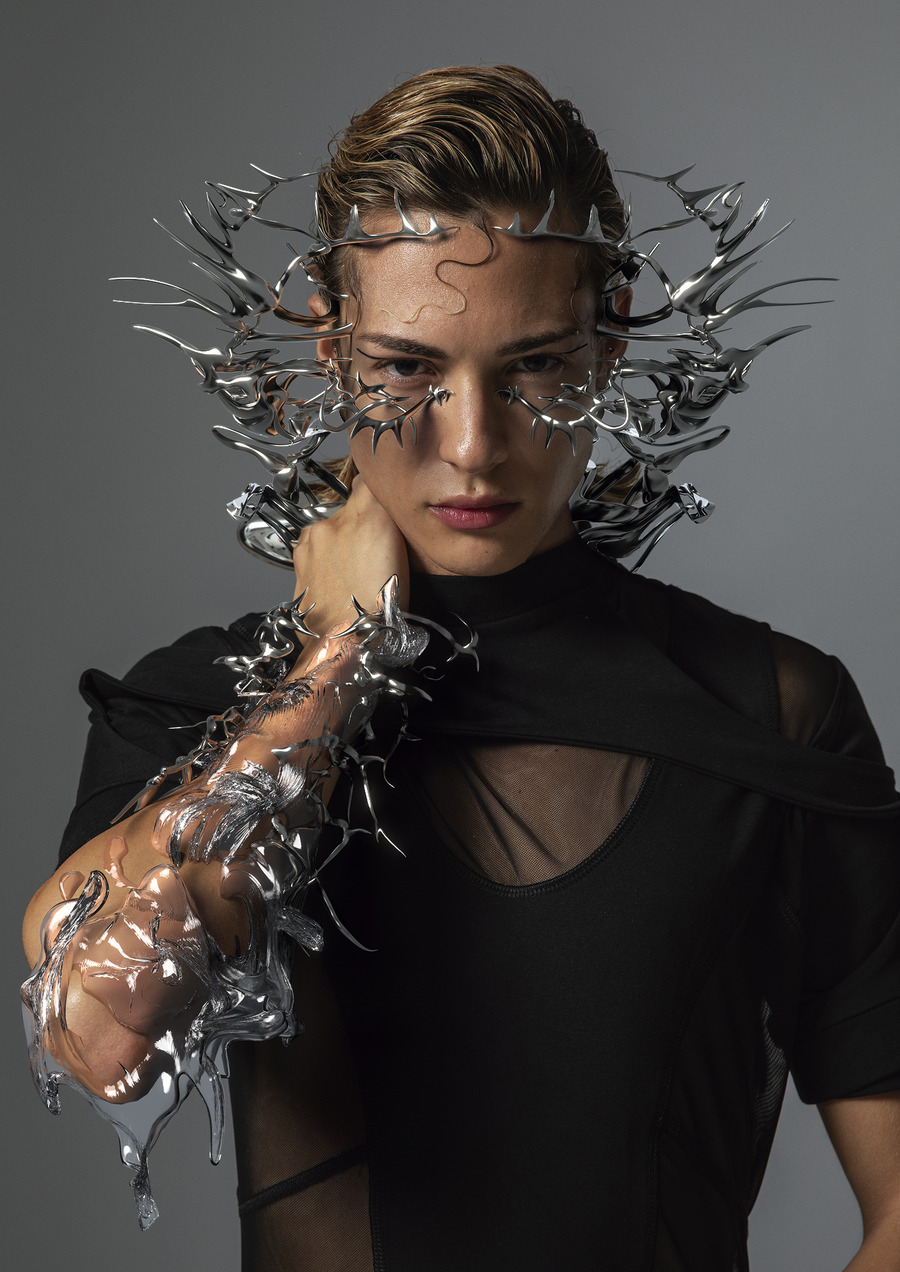 Within the “SUPERFICIAL PROFUNDITY” collection, designer Javier Giron presents a range that transcends conventional notions of reality. Drawing inspiration from the dynamic interplay between humanity and technology, this collection challenges established perceptions and offers a visionary interpretation of our world in the digital era.