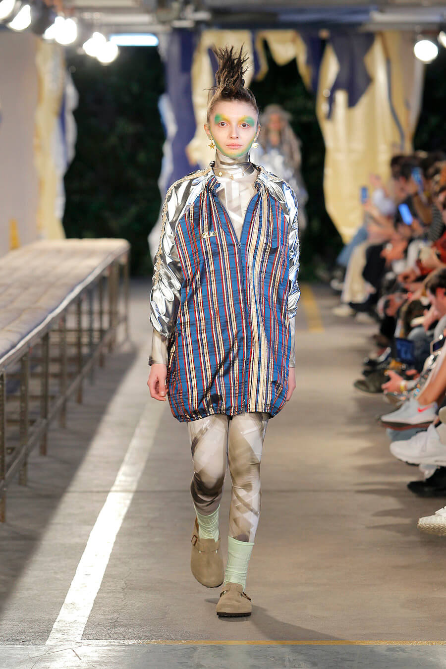 The Man/Machine duality is carried over from the previous season and inspires new dialogues, such as the one created between hand-made textiles and 3D art. Synthetic materials coexist with traditional fabrics.