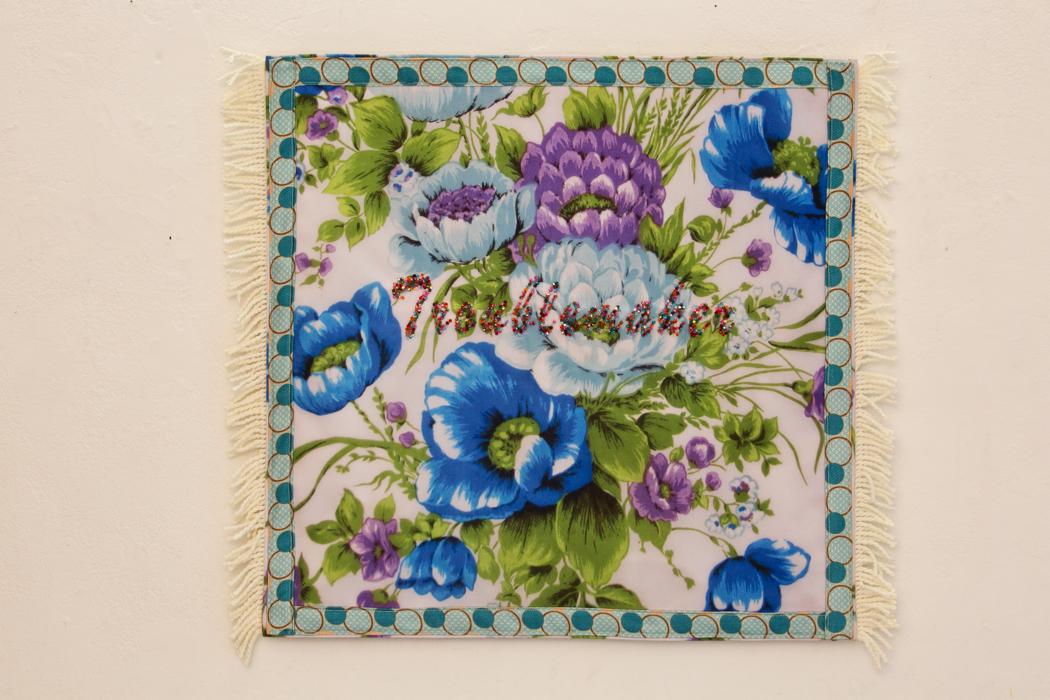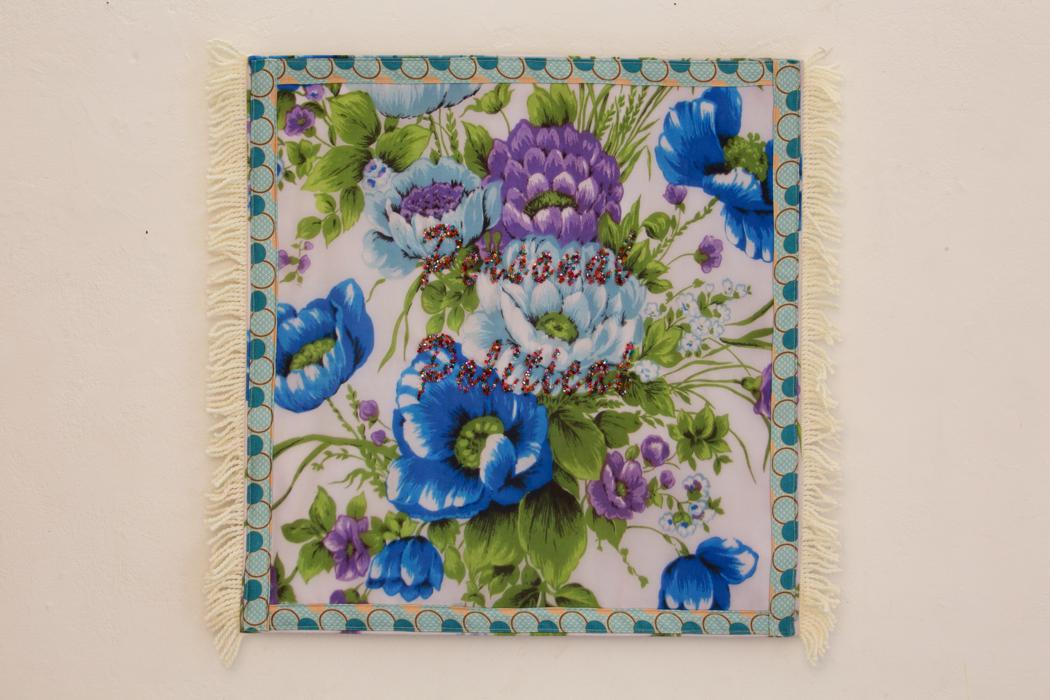 I was embroidering the words and I was like, oh, let’s call the group show like this. And it made a big boom. I chose it because I wanted people to say those words. Then they are out there. It gives them energy.