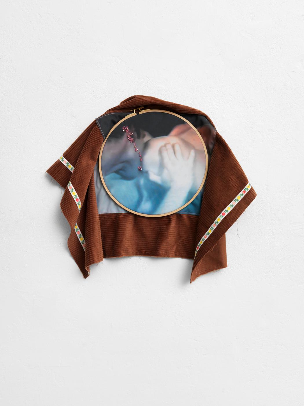 Jonny Star: It’s definitely related to the 60s and 70s. I like the colours. We can just go back. This is my childhood, where I grew up. And I still love it. It’s also awesome to find them. The process of finding the fabric is totally in the artwork, is part of the artwork, how the patterns go with the image or the colours or whatever. Sometimes you can look through the image a little bit, so the pattern is working with the image. And the Swarovski beads are more like pigments.