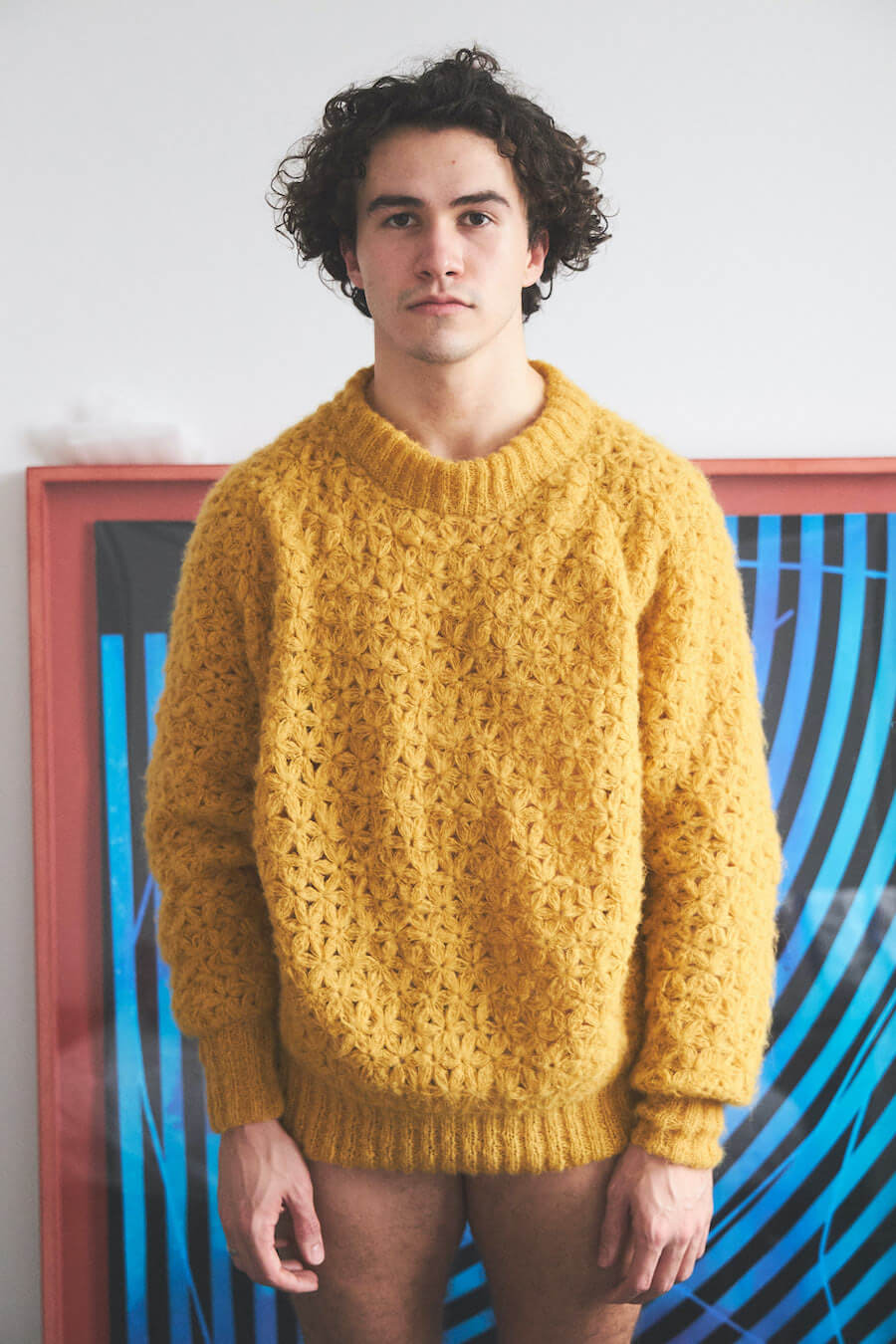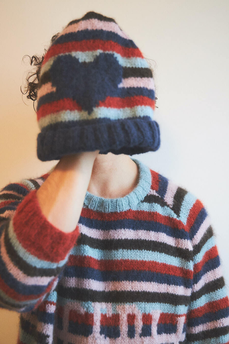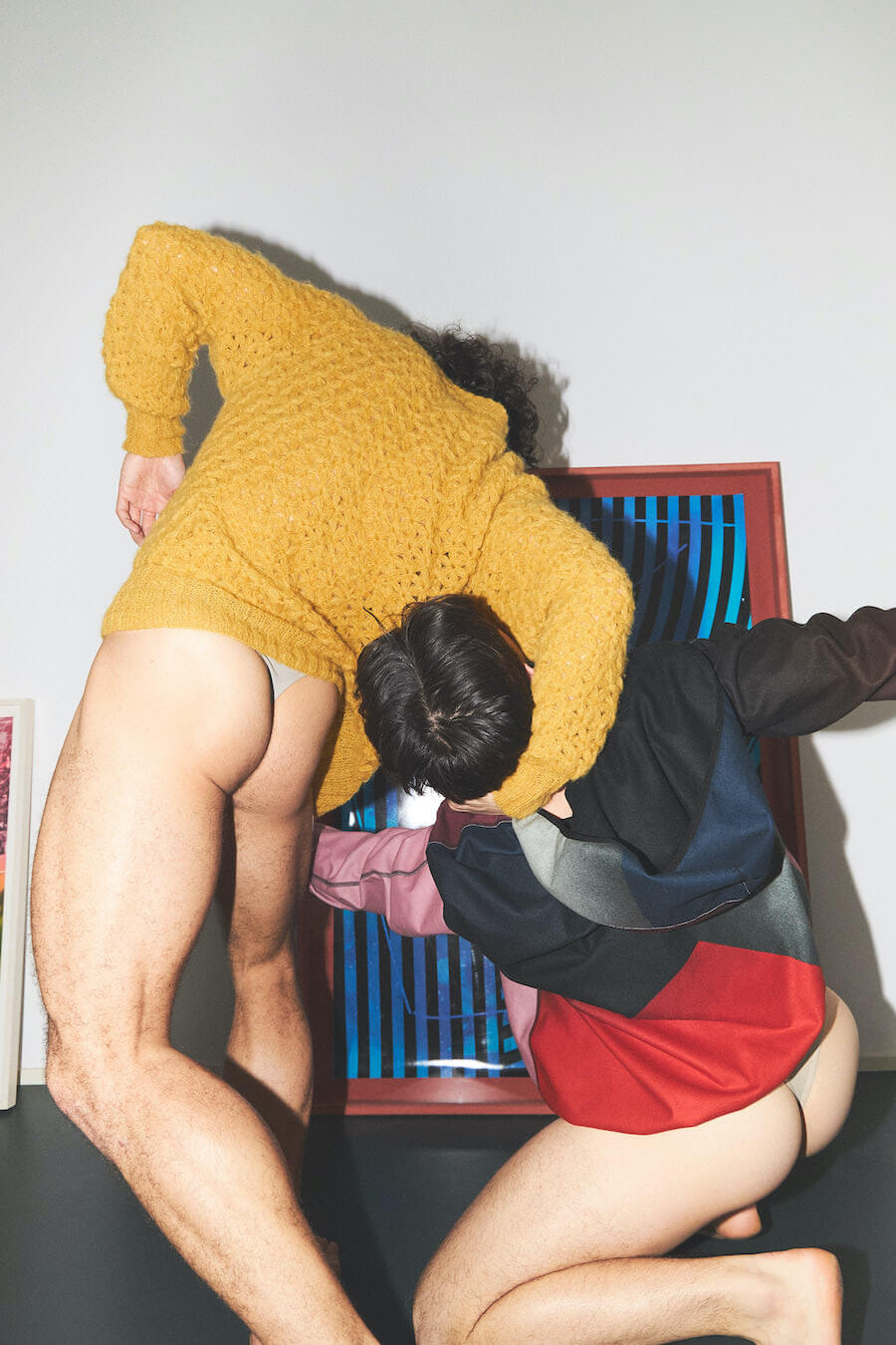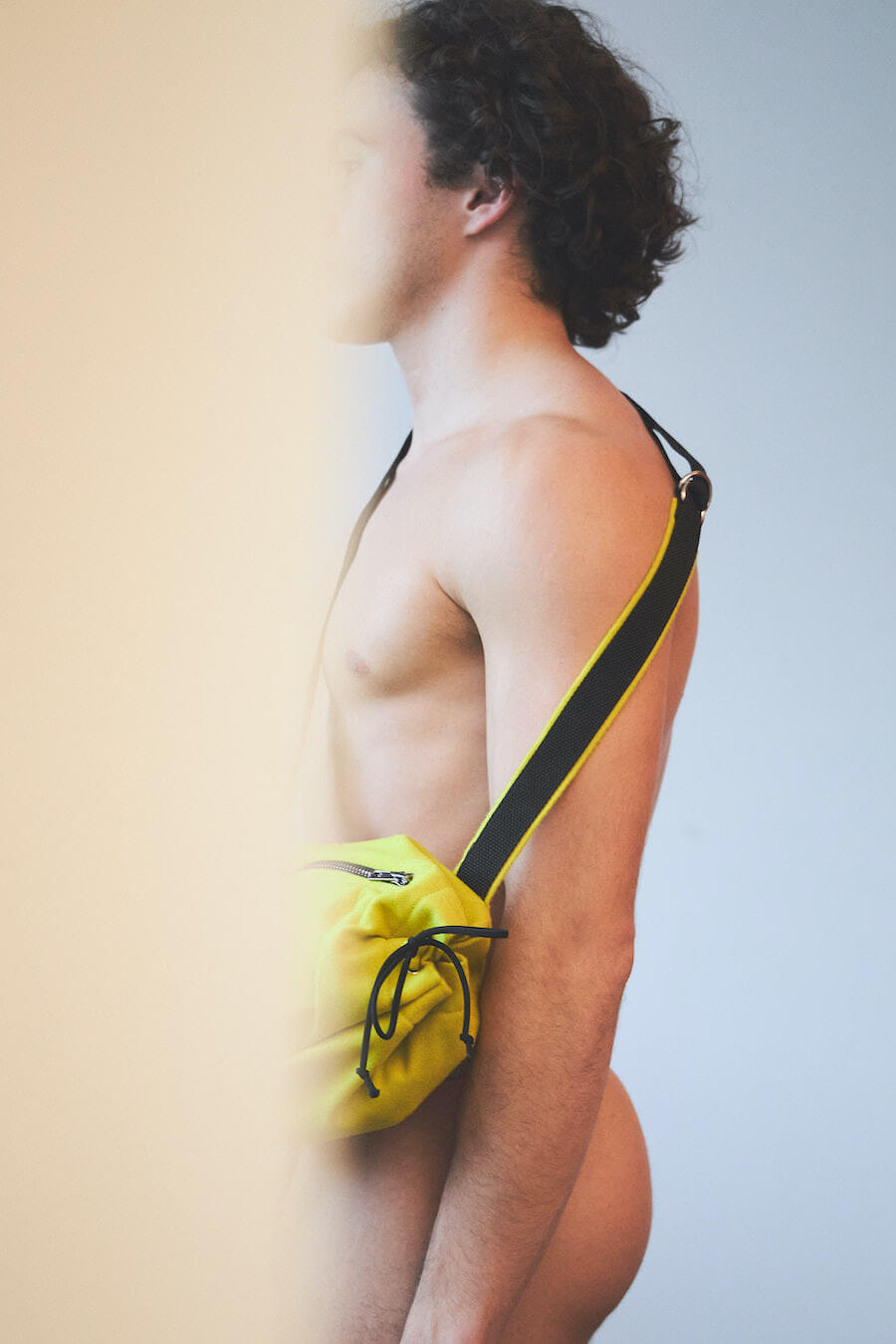 HARD2 – The Hardau development is a building complex in Zurich built between 1976 and 1978. It comprises a total of four high-rise buildings with a maximum height of 95.4 meters. They shape the city’s skyline to this day. Julian living on the 22nd floor, just one short elevator ride away from Shiranas home a few floors up, Hardau fueled all the inspiration for this collection. With Shirana’s colourful room–installations as a core to this collection, we entered a new area of architectural clothing, where the body wrapped in textile gains the dimension of a room.