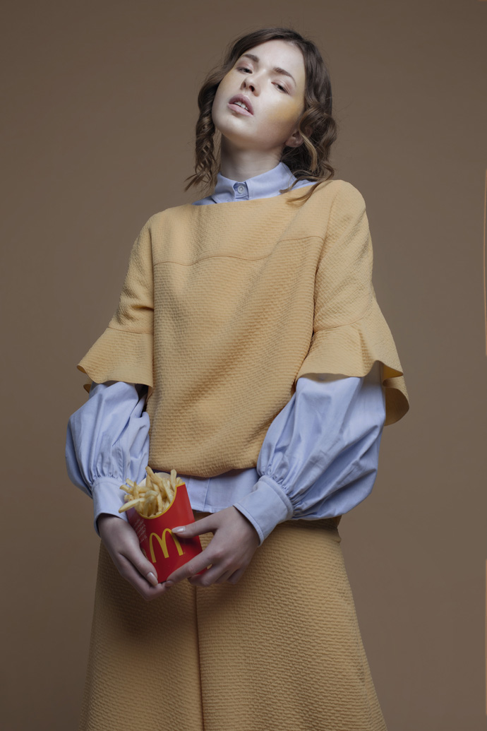 A KALTBLUT exclusive womenswear editorial – called JUNKIE and it’s inspired by Junk food recent trend. Photography by Marta Ulisse. Model is Alina Sirbu. Styling by Giulia Antinori and Roberta Vitielli using fashion by Marc Jacobs, Chloè, MSGM, Max Mara, Gucci, ACNE Studios. Hair and make up by Francesca Calaresu.