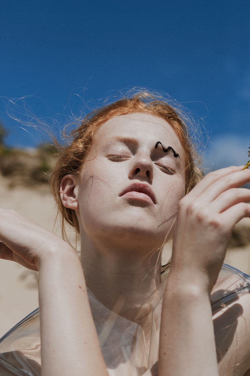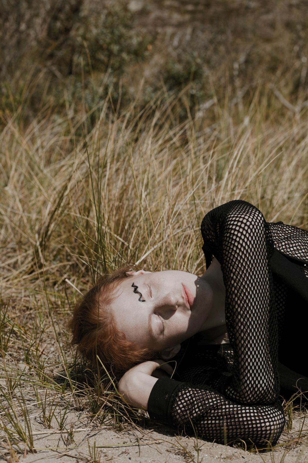 A KALTBLUT exclusive womenswear editorial. Photography by Klaudia Molenda. “I am 24 years old. I am a fashion and portrait photographer from The Netherlands. I prefer to capture my models I a more natural way. I also like to combine nature with fashion. For this particular photoshoot I’ve worked with the beautiful and young Juno from De Boekers. I chose her as my model, because she had something different and that really spoke to me. Red har, freckles, dark eyes, pale skin. The fashion was done by Daria Kuvshinova. She used brands like Jutka & Riska, Dior, Versace, Marella, Louis Vuitton. Hair and make-up was done by the talented Jiali Bao.” says the photographer.