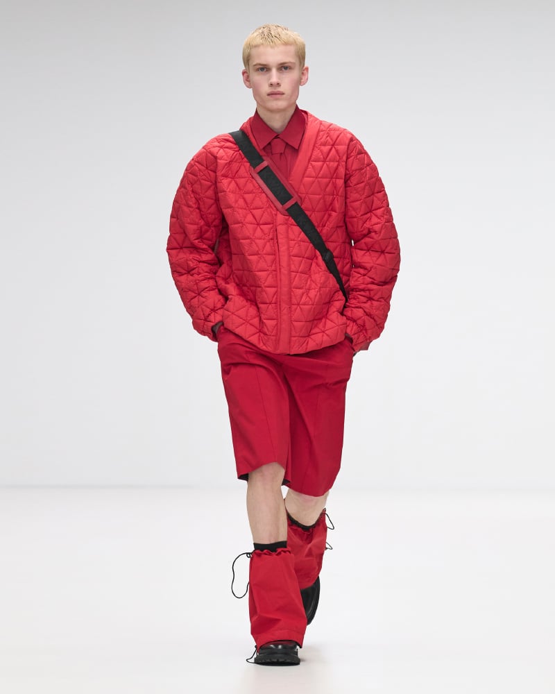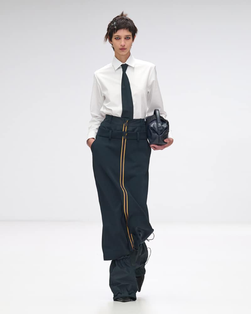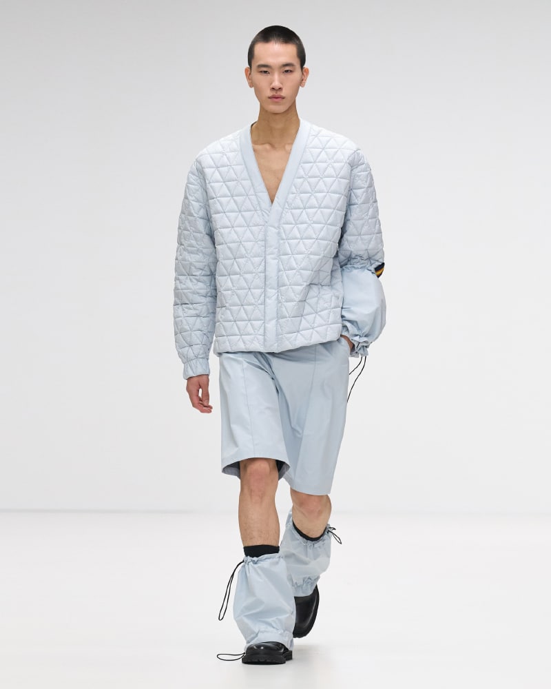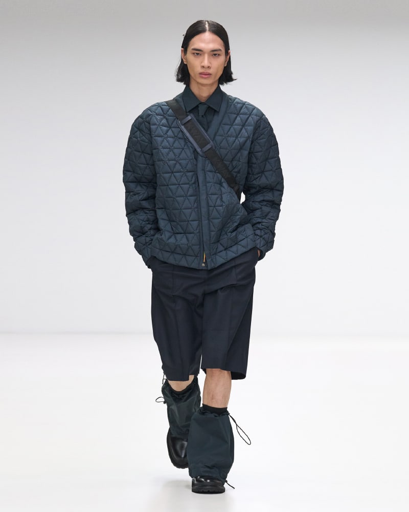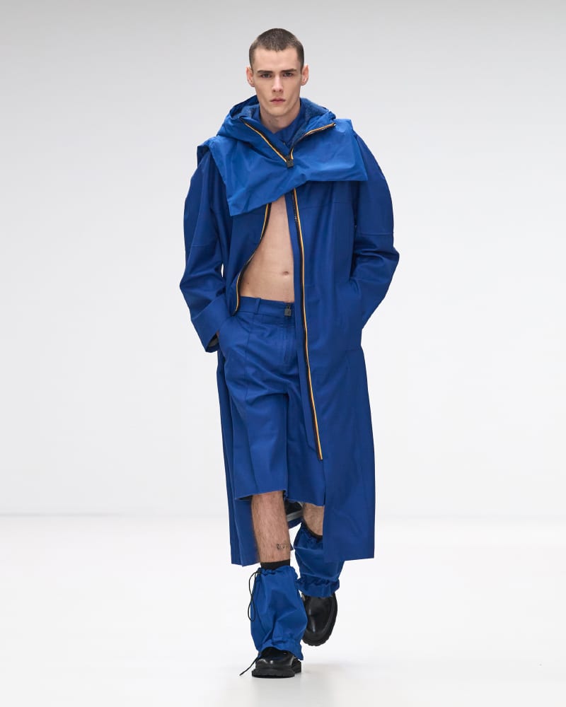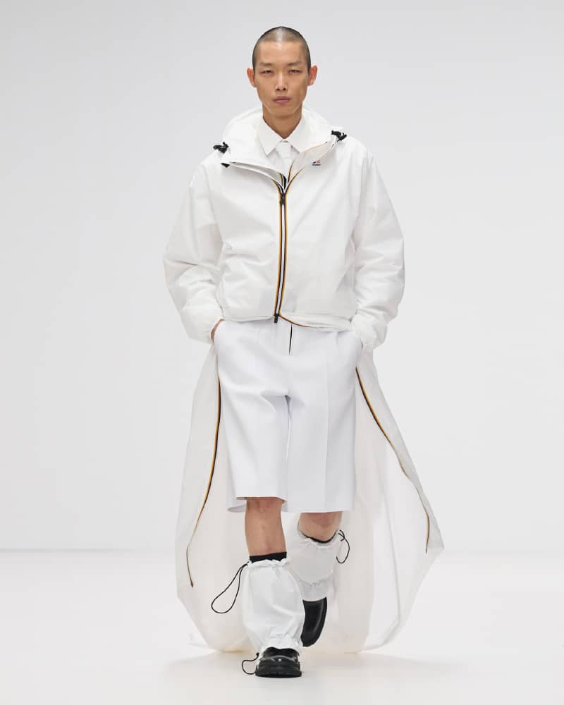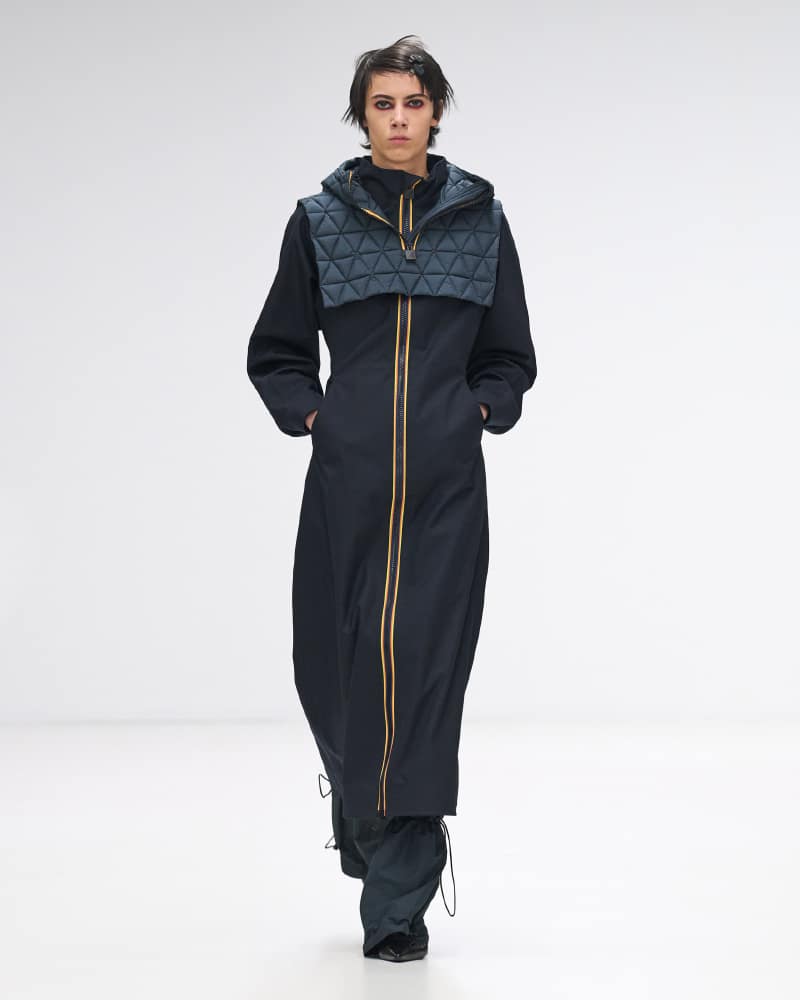 The collection itself served as a masterclass in innovation, with an array of colours, shapes, and materials that epitomized K-Way’s dedication to high-quality design and functional elegance. The spotlight was on the iconic Le Vrai 3.0 jackets, crafted from waterproof and breathable fabrics, which made a resounding statement in various styles and sizes, ranging from sleek raincoats to urban-chic windbreakers, and even extending to stylish skirts and bags. The signature three-colour zipper, a striking emblem of the brand, infused each ensemble with an arresting contrast and dynamic flair, complemented by geometric quilting that adorned an array of garments and accessories, from coats to tops, skirts, trousers, and beyond.