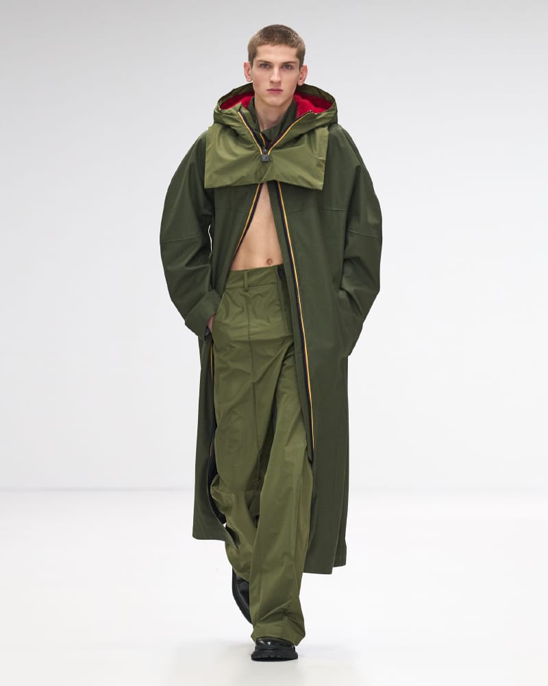 Sustainability took centre stage as well, with the collection showcasing an exquisite blend of sustainable furs, scuba, sumptuous velvet, and luxurious wool, resulting in a rich tapestry of textures that artfully mirrored the boundless creativity and adaptability of K-Way’s research and development line. Every material was thoughtfully selected and ethically sourced, underscoring the brand’s unwavering dedication to environmental and social responsibility. Embracing a spirit of fearless experimentation, the collection invited its audience to engage in the art of layering, encouraging the playful mixing and matching of elements to curate distinctive, yet remarkably practical ensembles.