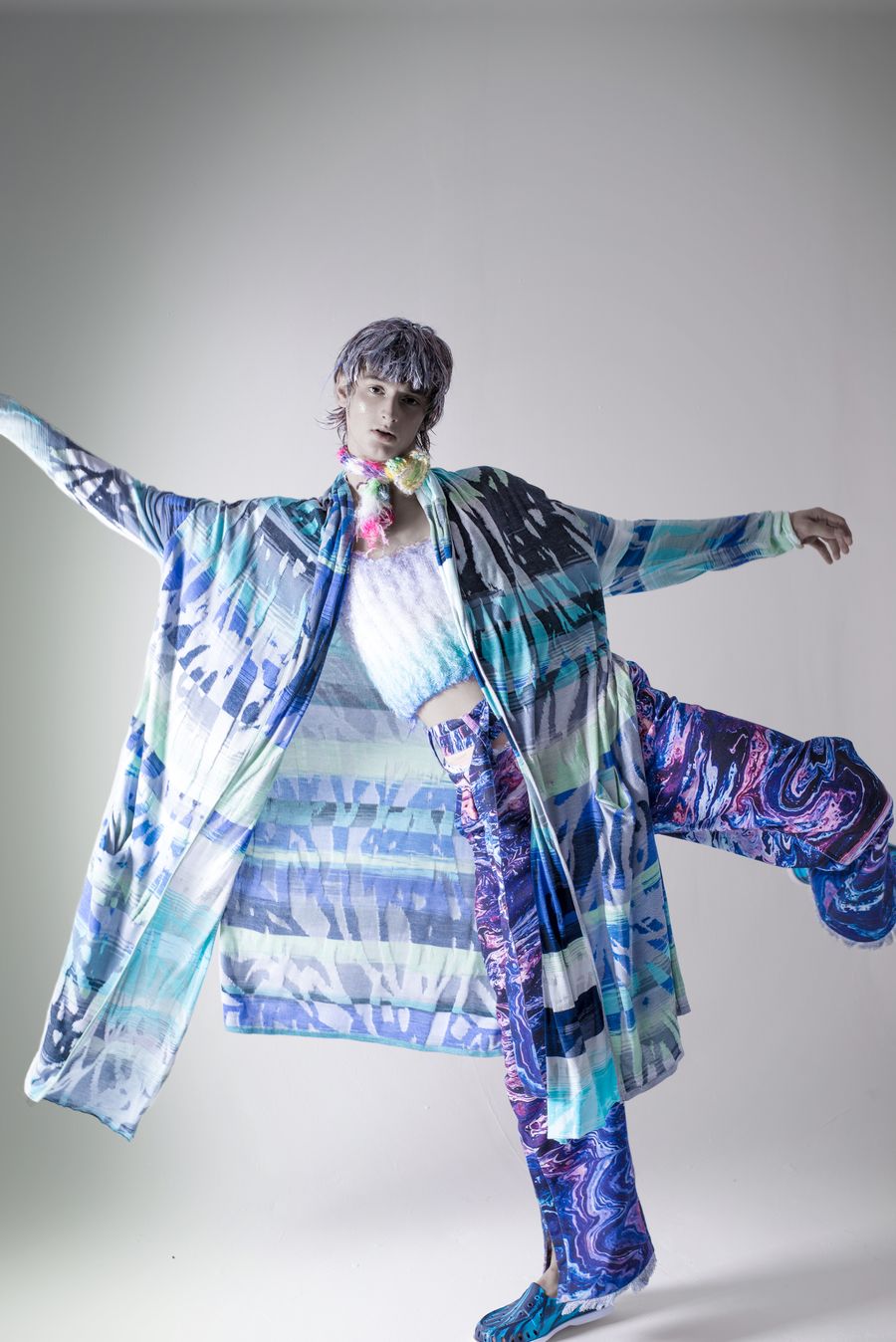 The gradient colours, prints and textures are inspired by the fragile and beautiful wings of butterflies. The knits are made using bespoke and sustainable space-dyed yarns. Devoré, one of the KA WA KEY’s signature techniques, have been used to create romantic transparent textures.