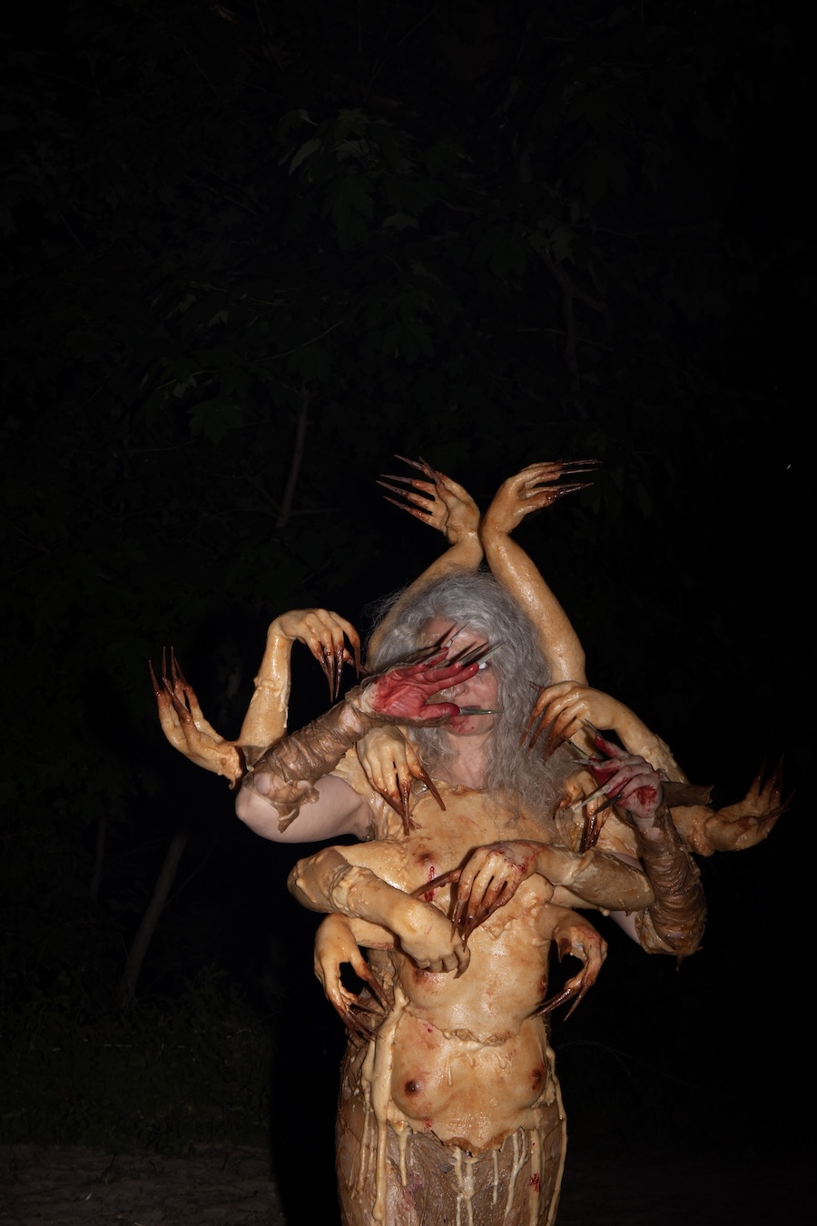 Still, the looks offer a strange kind of beauty and allure. I wanted to create self-empowered antagonists, finding strength in their own abjectness, embracing raw, messy, primal femininity and evading the idea of the digestible woman.