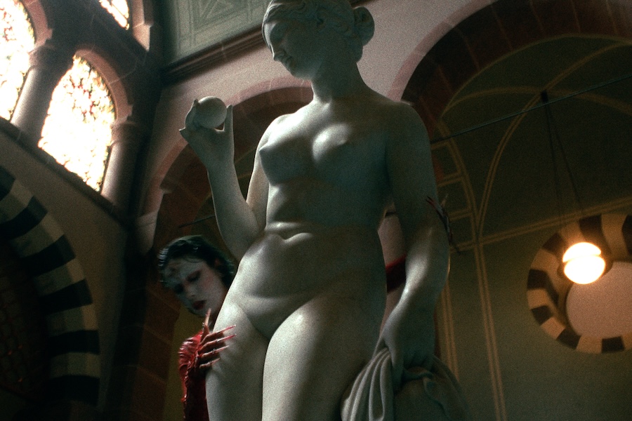 There are different concepts behind the individual characters portrayed in the film; all of them are related to horror film tropes around female qualities and the female body. When directing this film, we made sure not just to repeat these tropes, but to subvert them by redistributing the agency into the hands and claws of our protagonists. Visual influences for me in particular were photographs by Daisuke Yokota and horror classics like Nosferatu and Suspiria. Thematically, I also looked at a lot of contemporary female-led horror films like The Substance, Jennifer’s Body, and Black Swan for their treatment of femininity in relation to attraction, repulsion, and ambition.