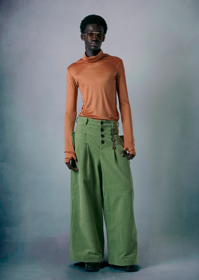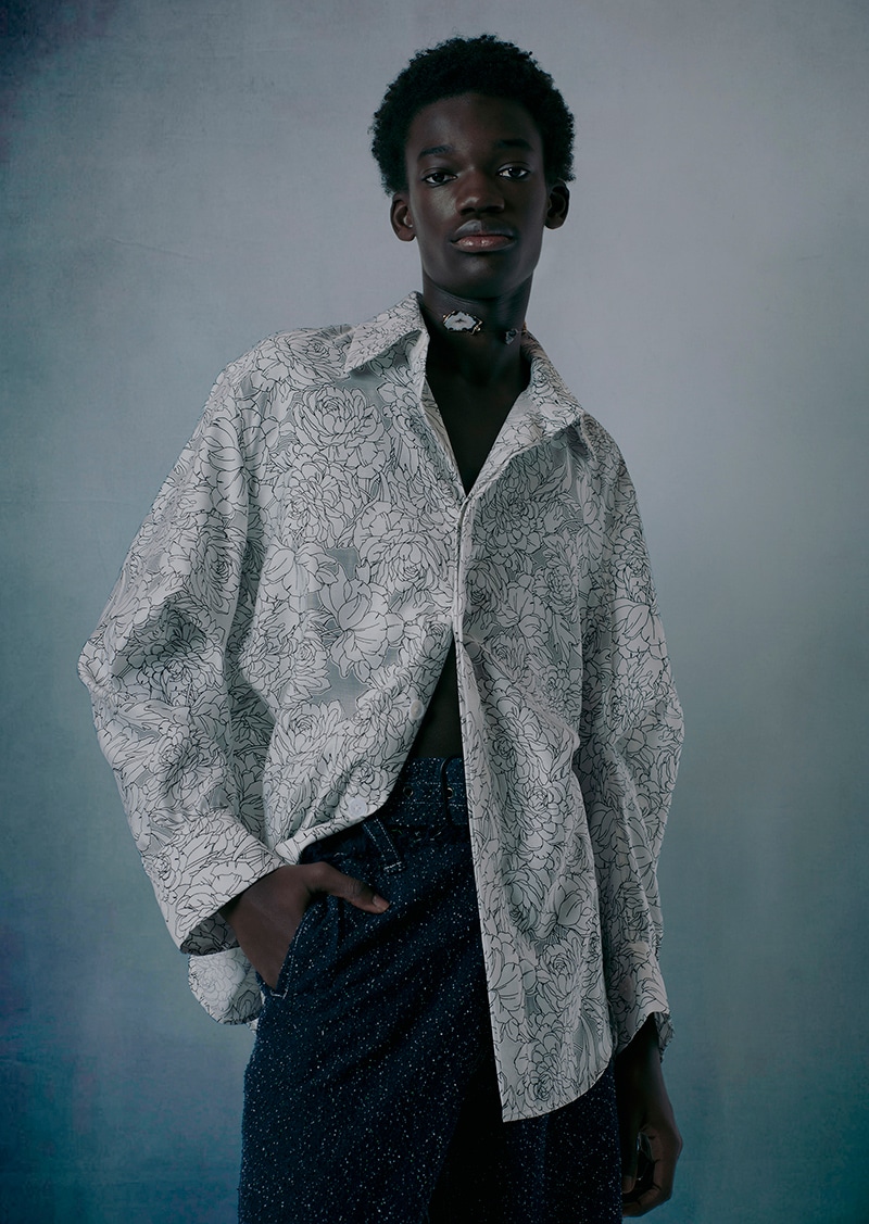 This collection stands on a remarkable foundation of minimalistic cuts rendered in unexpected proportions, crafted from simple yet luxurious eco-conscious fabrics. Each piece features bespoke meticulous prints designed by KAWAKEY’s talented in-house team.