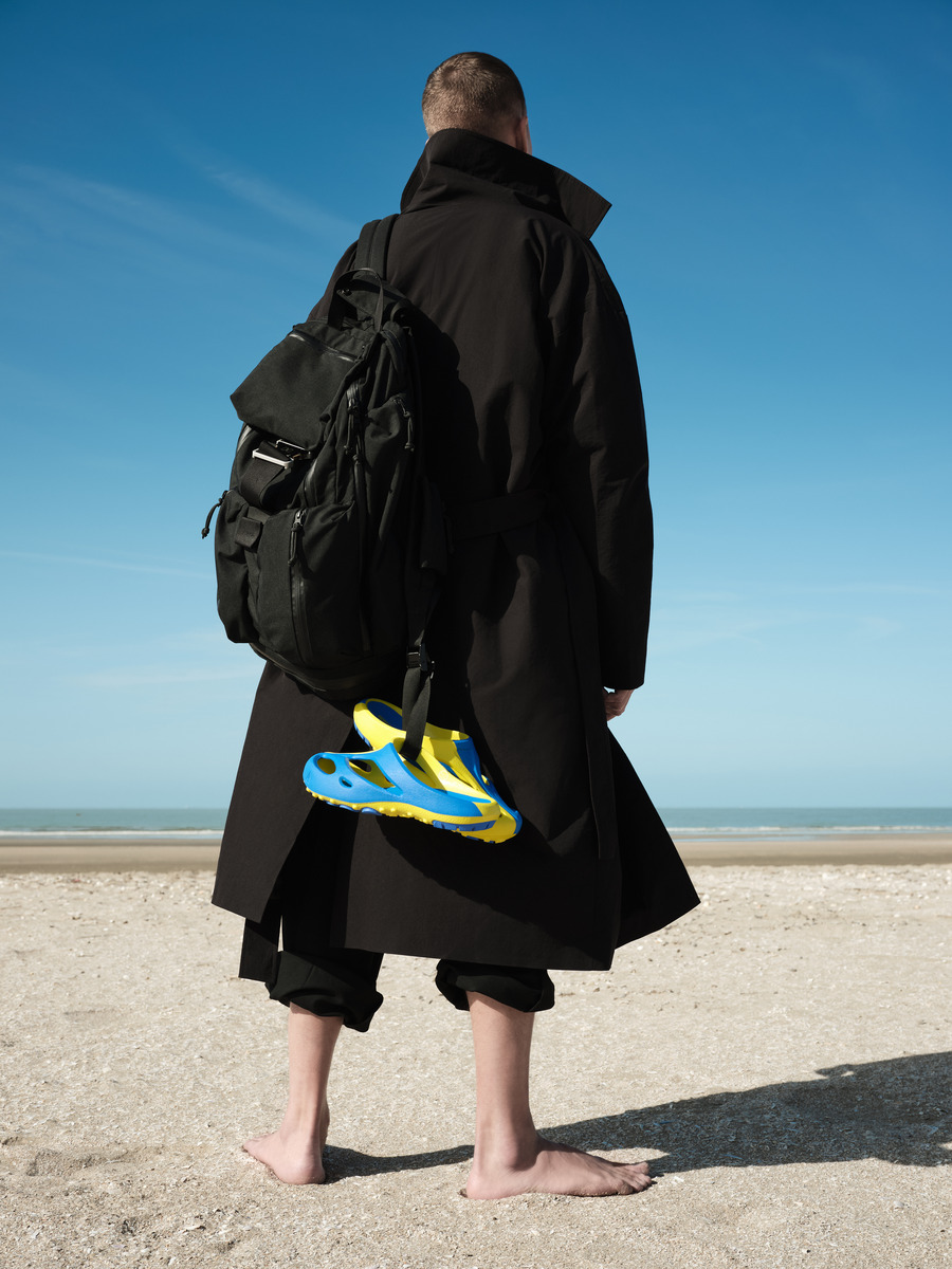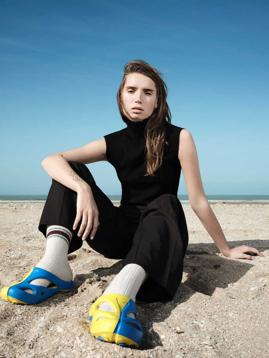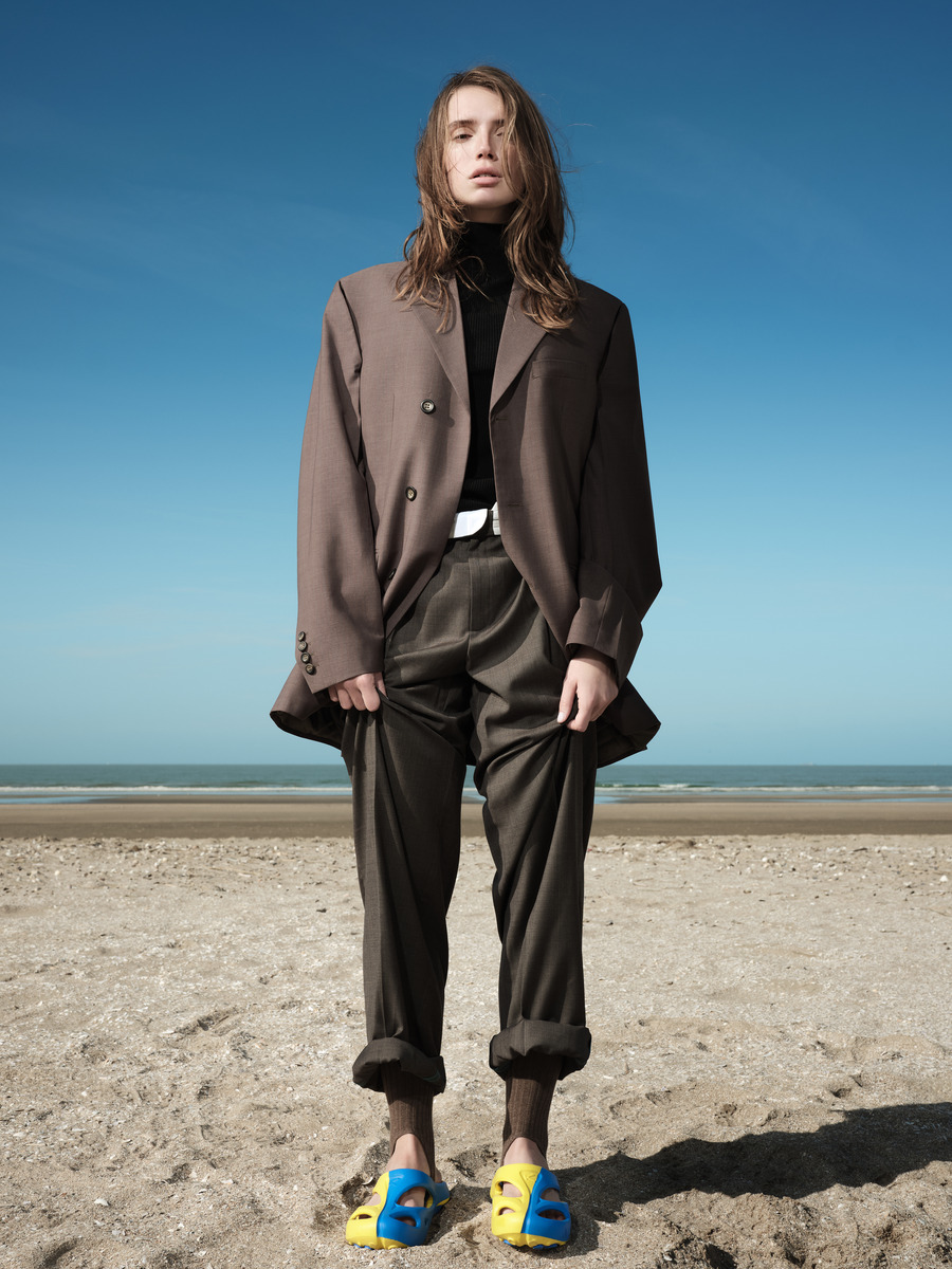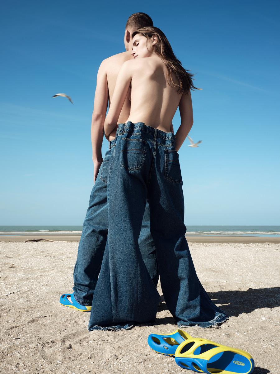 The campaign was shot on the 6th of October, the same day Russia deployed additional troops to the frontline. A team comprised entirely of Ukrainian talent was assembled to create striking and thoughtful imagery. The team included stylist/model Diana Onatska, model Dmytro Avdieiev, make up & hair artist Sasha Vetrova and photographer Ksenia Kargina who spoke of her inspiration for the shoot, “The concept for me is the feeling of freedom and natural strength, which you can feel inside. It’s like an ocean – one of the most powerful things, unstoppable, so natural. So we had the idea to shoot near the ocean – it’s a little metaphorical for us, sure. Even in this terrible situation having this inward freedom of spirit, free will, is something that can make you feel really human. And for sure for me love – something that can really empower you in any kind of situation, it’s also an energy of life. So in the shoot, we can see models expressing their emotions in movements full of energy, full of freedom in their bodies, and not afraid to be themselves. So the idea is about free people with free will, never scared of what they are, and full of love and energy to live this life. So for me, it’s truly about Ukrainians”