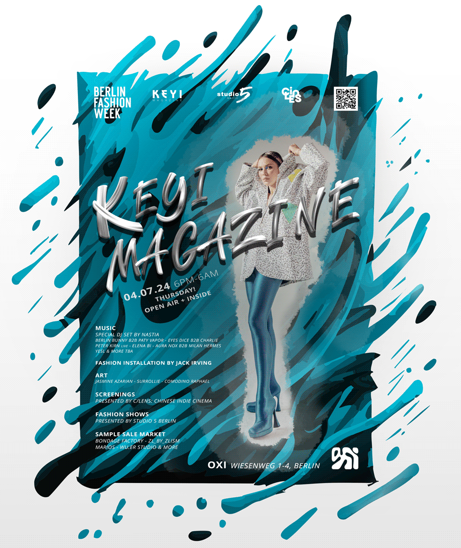 KEYI Magazine proudly announces its return as an official side event of Berlin Fashion Week, showcasing a surprising blend of fashion, art, and music. Set to take place on July 4, 2024, at the legendary club OXI, this event promises an unforgettable experience for attendees, featuring renowned and upcoming designers, artists, and musicians.