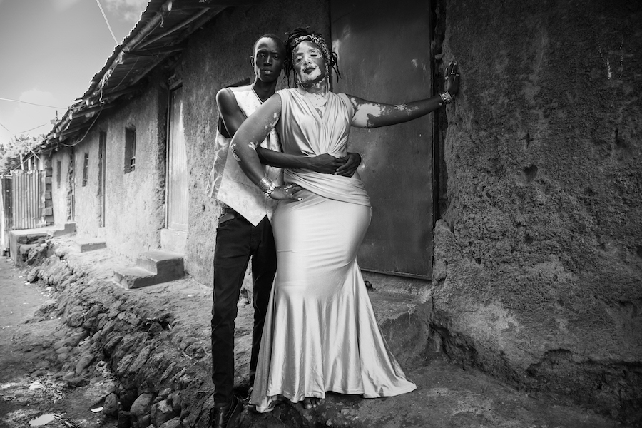 “I shot this editorial over the course of four months in Kibera with 34 models representing a variety of cultures (Kenyans, Somalis, South Sudanese), skin colors and body types. Kibera and Kenya as a whole is diverse with many different nationalities and tribes and I wanted to show this in my selection of models. As well, in this current world where humans are divided based on political views, religion, race, gender identity and sexual orientation, I wanted to illustrate the power of love in bringing people together to make positive social change. The cast of models includes a burn survivor who trains Kiberian youth to create sustainable art, a vitiligo activist, a fitness model who teaches football to children from the slums and a South Sudanese menstrual rights advocate working with girls in Kibera.