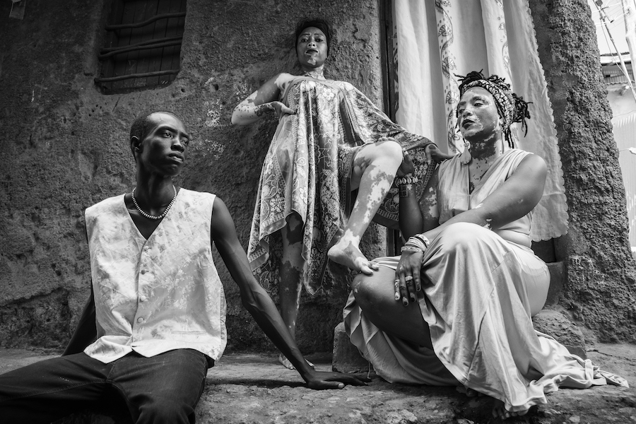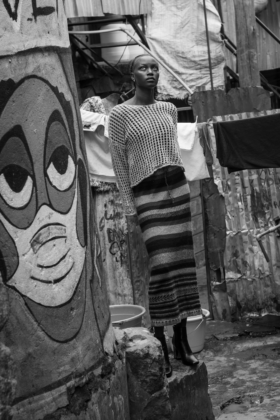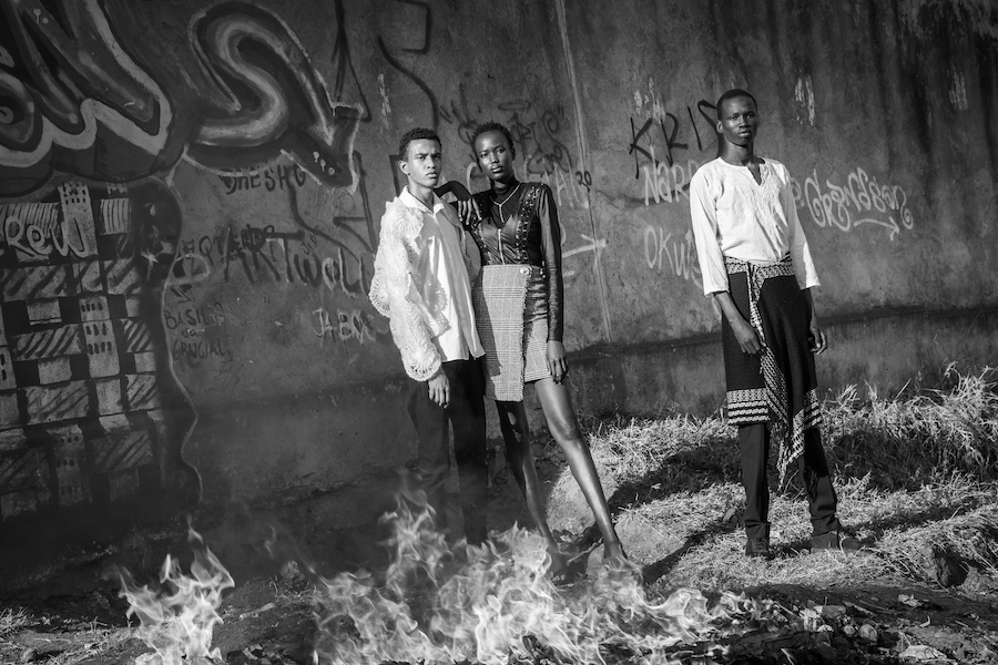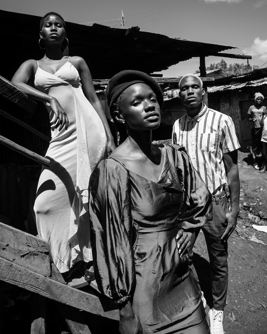 “I shot this editorial over the course of four months in Kibera with 34 models representing a variety of cultures (Kenyans, Somalis, South Sudanese), skin colors and body types. Kibera and Kenya as a whole is diverse with many different nationalities and tribes and I wanted to show this in my selection of models. As well, in this current world where humans are divided based on political views, religion, race, gender identity and sexual orientation, I wanted to illustrate the power of love in bringing people together to make positive social change. The cast of models includes a burn survivor who trains Kiberian youth to create sustainable art, a vitiligo activist, a fitness model who teaches football to children from the slums and a South Sudanese menstrual rights advocate working with girls in Kibera.