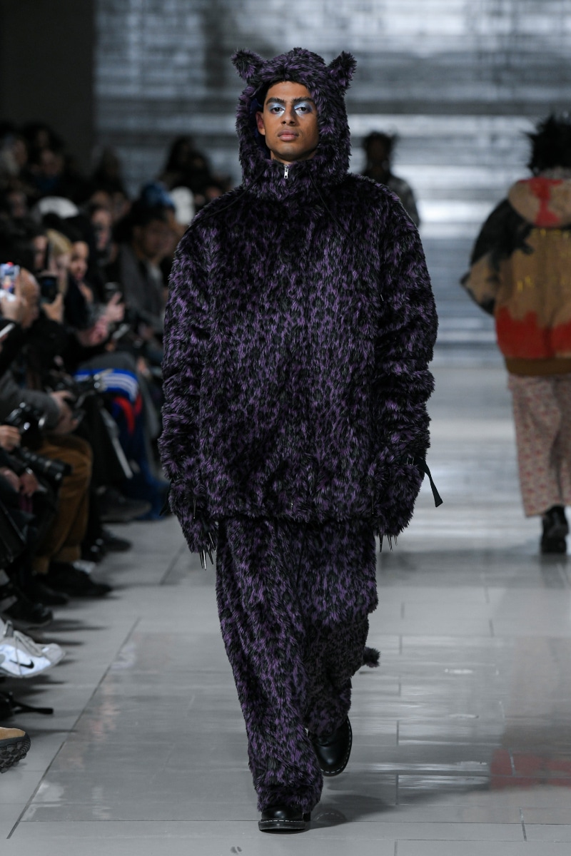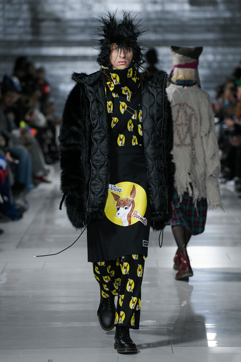 Delving into the anarchic core of the movement and emerging with a collection drenched in craftsmanship, the lineup is a symphony of juxtaposition—imbued with the spirit of ’70s punk, yet speaking a language of sartorial modernity. KIDILL enlists the mastery of Japanese artisans, who infuse traditional techniques into every stitch and pattern, creating a tapestry that weaves rebellion into its very fibres.
