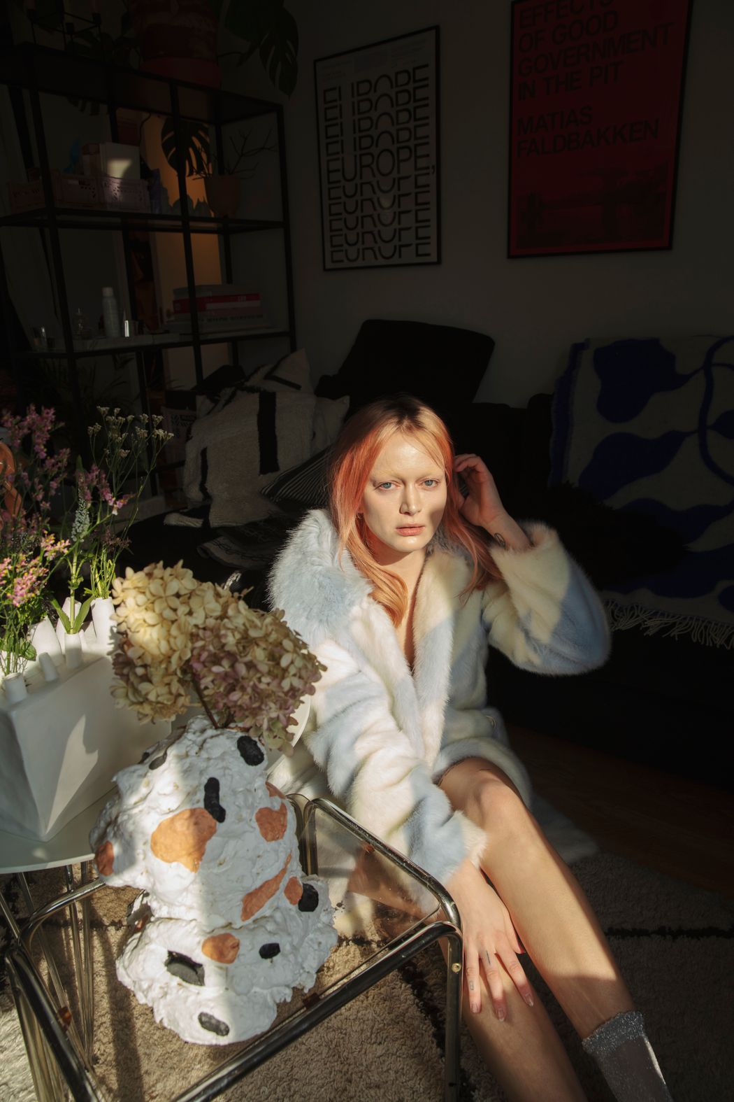 A KALTBLUT exclusive editorial capturing everyday life in Sweden, in the home and surroundings of model and art director Ingrid and her sphynx cat Kijo. The aesthetics are raw, playful and personal, showing what creativity during the pandemic can look like. Photography by Johanna Stroud. The model is Ingrid (Lind Models). Styling by Anna Karlsson. Production-Location: Gothenburg, Sweden.