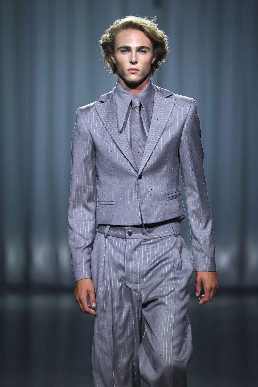 Kilian Kerner unveiled his latest collection, “DDR. The Stolen Children,” during Berlin Fashion Week, as part of COLLECTIVEFOUR. This marks the first time Kilian Kerner, alongside fellow designers Danny Reinke and Marcel Ostertag, presented their collections in the expansive Uber Arena, having previously showcased their works in the Uber Eats Music Hall in earlier seasons.