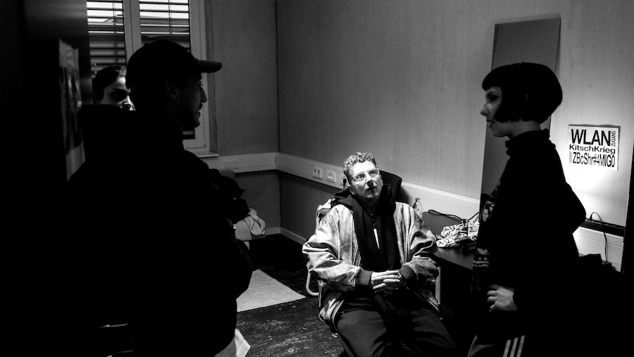 In addition to this musical journey, KITSCHKRIEG ZWEI arrives as a visual album, a continuous performance film morphing into a stylised rave for the camera, existing at the intersection of art and entertainment, echoing Warhol’s spirit. The visual experience, both minimalistic and awe-inspiring, centres around the formidable Killasan Soundsystem, a staple from their first album installation at Berlin’s König Galerie. This system not only channels highs and lows but also embodies the very essence and timeline of electronic club music. As KITSCHKRIEG notes, “A soundsystem is like a space that reflects the history of what has happened within it.” Here, artists from diverse backgrounds unite, free from ego and politics, to contribute to a greater whole and continue writing history. The concept is brought to life in collaboration with designer Clemens Löffelholz, a constant presence in the KITSCHKRIEG universe, ensuring that the foundational principle of collaboration shines in the visual realm.
