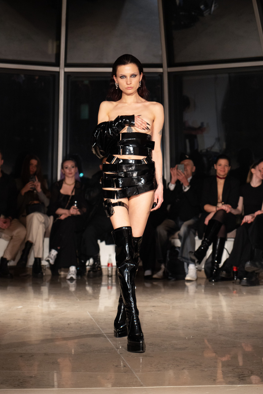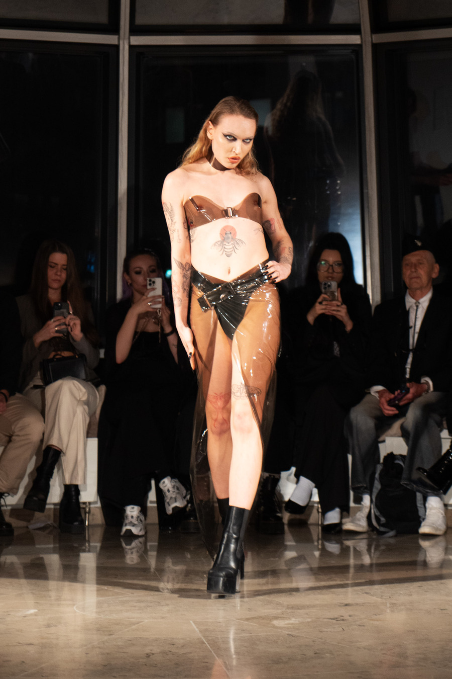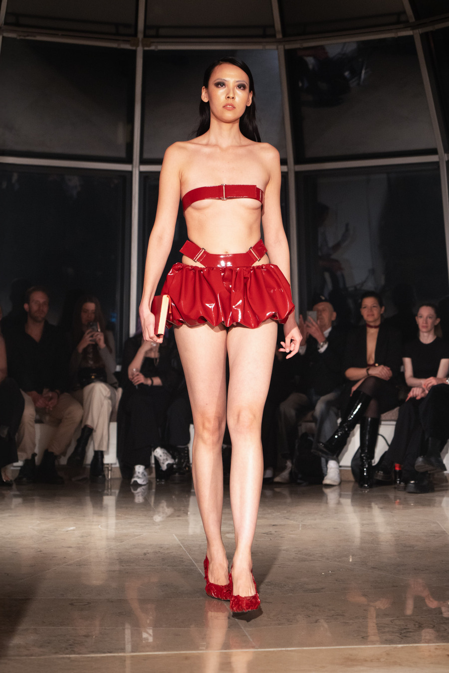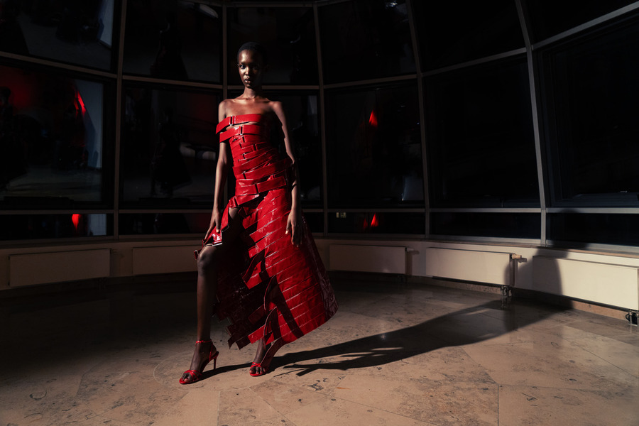 Karbon Kordani’s designs reflect the tension between limitation and freedom, merging vulnerability with strength to create impactful works of art. The collection reveals the hidden, daring aspects of individuals often overlooked in their routine lives, emphasizing the contrast between the ordinary and the extraordinary. This fashion show serves as a reminder that acknowledging the mundane and the daring is integral to embracing an authentic life.