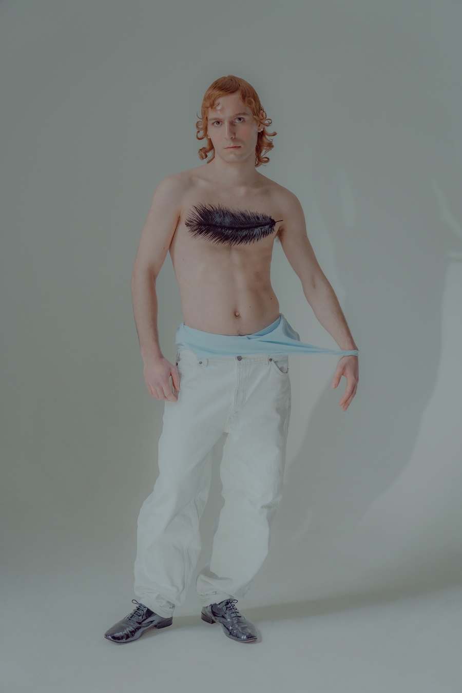 For the editorial entitled ‘Krumelus’ – inspired by the fantasy panel from Pippi Longstocking, a magical means of growing up – he worked closely with Romina Schenone (styling) and Sven Ohlsen (hair & make-up). The series of images tells of the quiet rebellion to retain a piece of the childlike self. Full of play, dreams and quiet retreats. Through gentle compositions, surreal moments and emotional tenderness, she invites us on a journey into inner worlds where fantasy and vulnerability coexist on an equal footing.