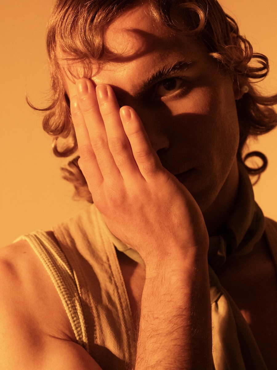 A KALTBLUT exclusive. Photography by Sebastian Koenig. Video by Max Pflügner. The model is Valentino. Hair & Make-up by Sven Ohlsen. Styling by Romina Schenone using Agoshida, Gant, Gucci, Polvora, Maje Paris, Arte Antwerp, Birkenstock1774, Jacquemus, Ancient Greek, Hunter, Kenzo, Levi’s, Repetto.