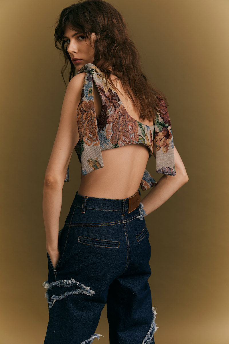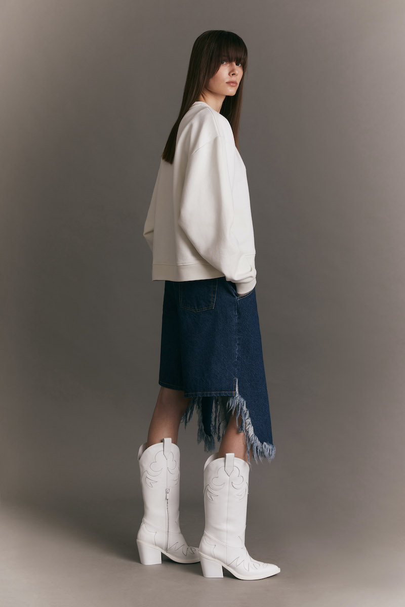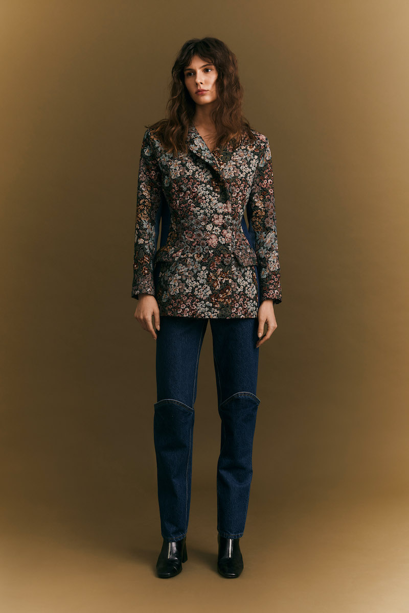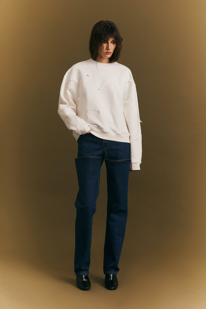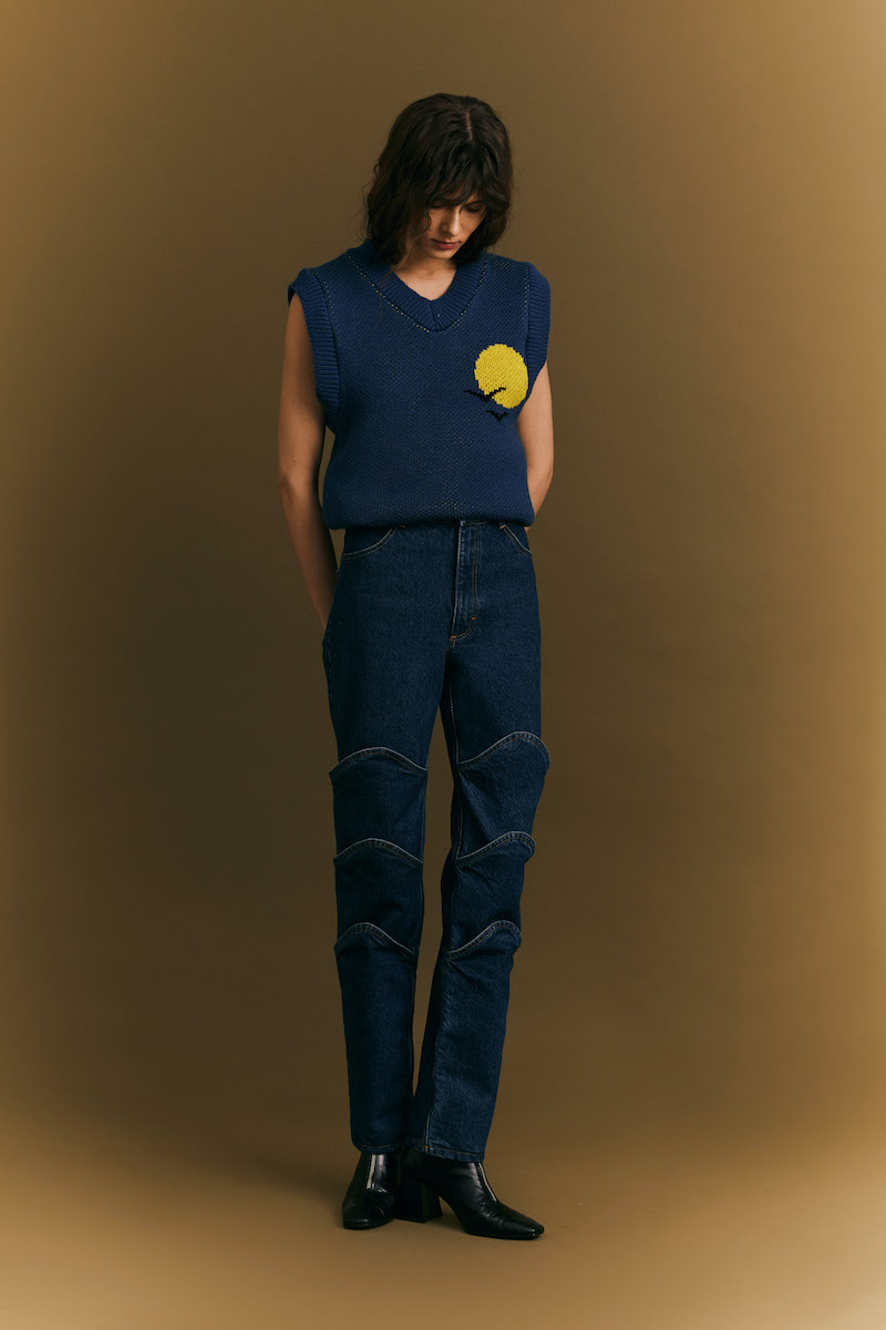 This season KSENIASCHNAIDER is mostly working with denim, jacquard, and jersey.