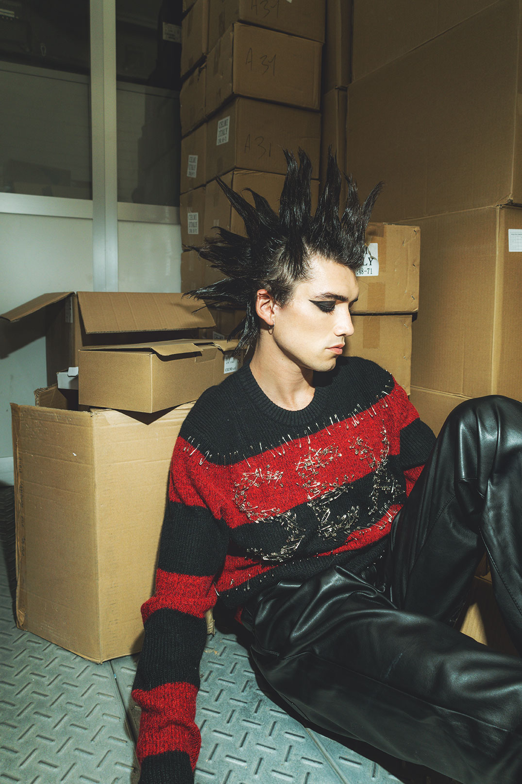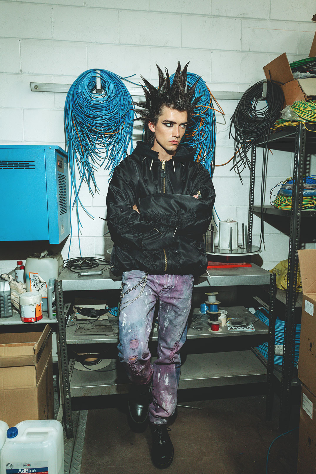 A KALTBLUT exclusive. Photography by Ylenia Giordano. The model is Benjamin Arias. Make up by Giorgia Massaro. Art direction and styling by Niccolò Roncagalli using Brvno, Asos, Dr. Martens, Barca, Gianmarco Giannuzzo, Ro Rox, Volcom, Leocoso, Calvin Klein.