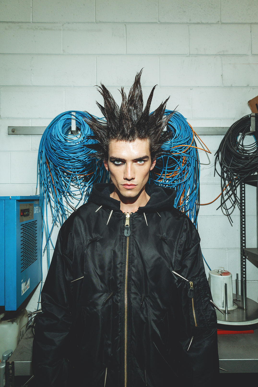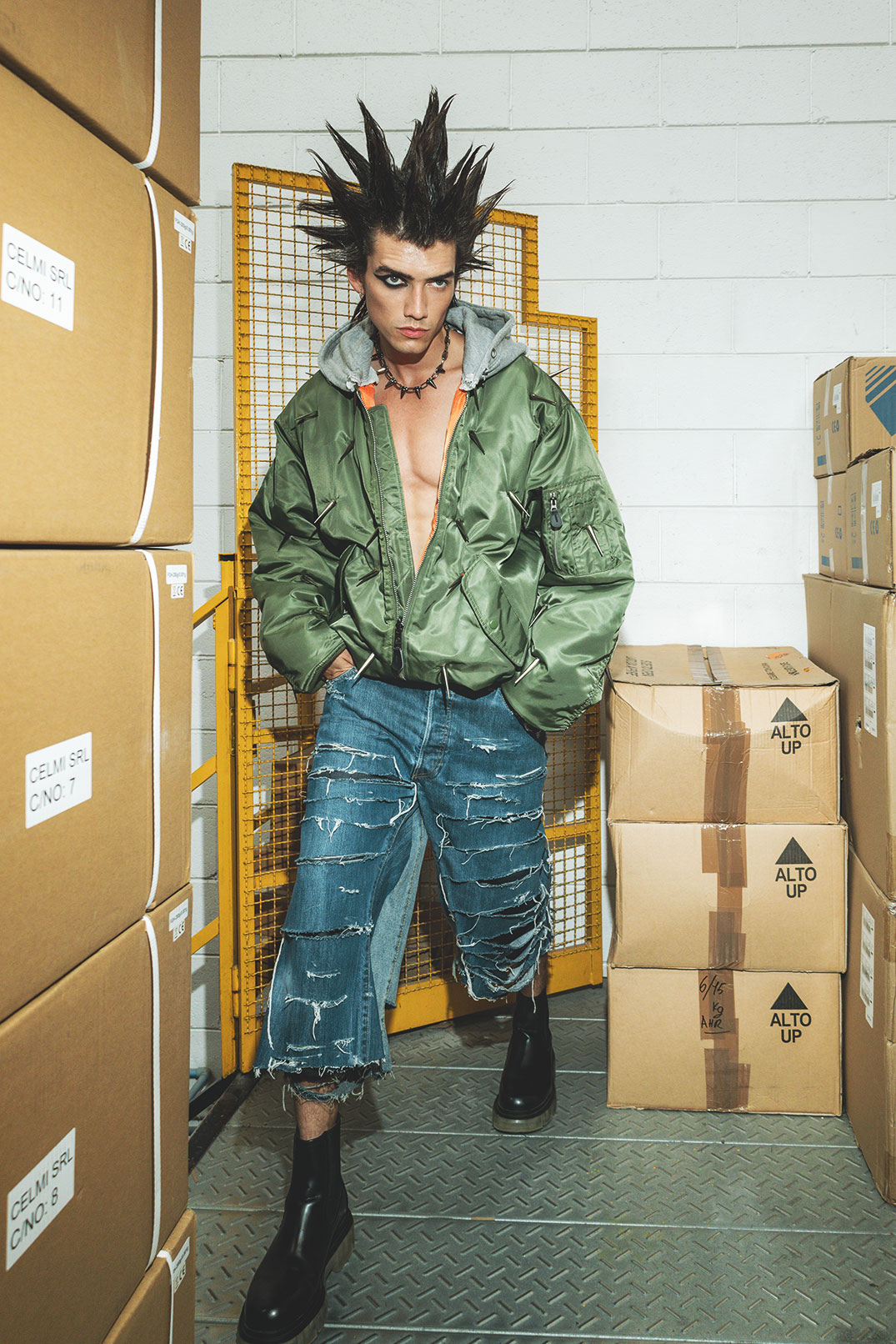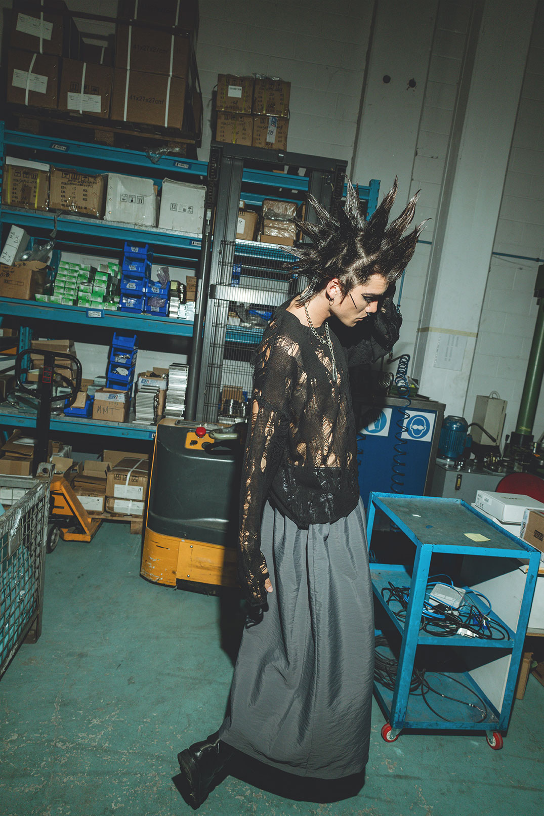 “The title KuNp is an anagram of ‘punk,’ chosen to reflect the rebellious, non-linear spirit of punk culture, where rules are subverted and meanings reshaped. The story offers a contemporary interpretation of punk aesthetics, blending emerging brands, customised pieces, and an industrial setting to capture the essence of modern rebellion.”