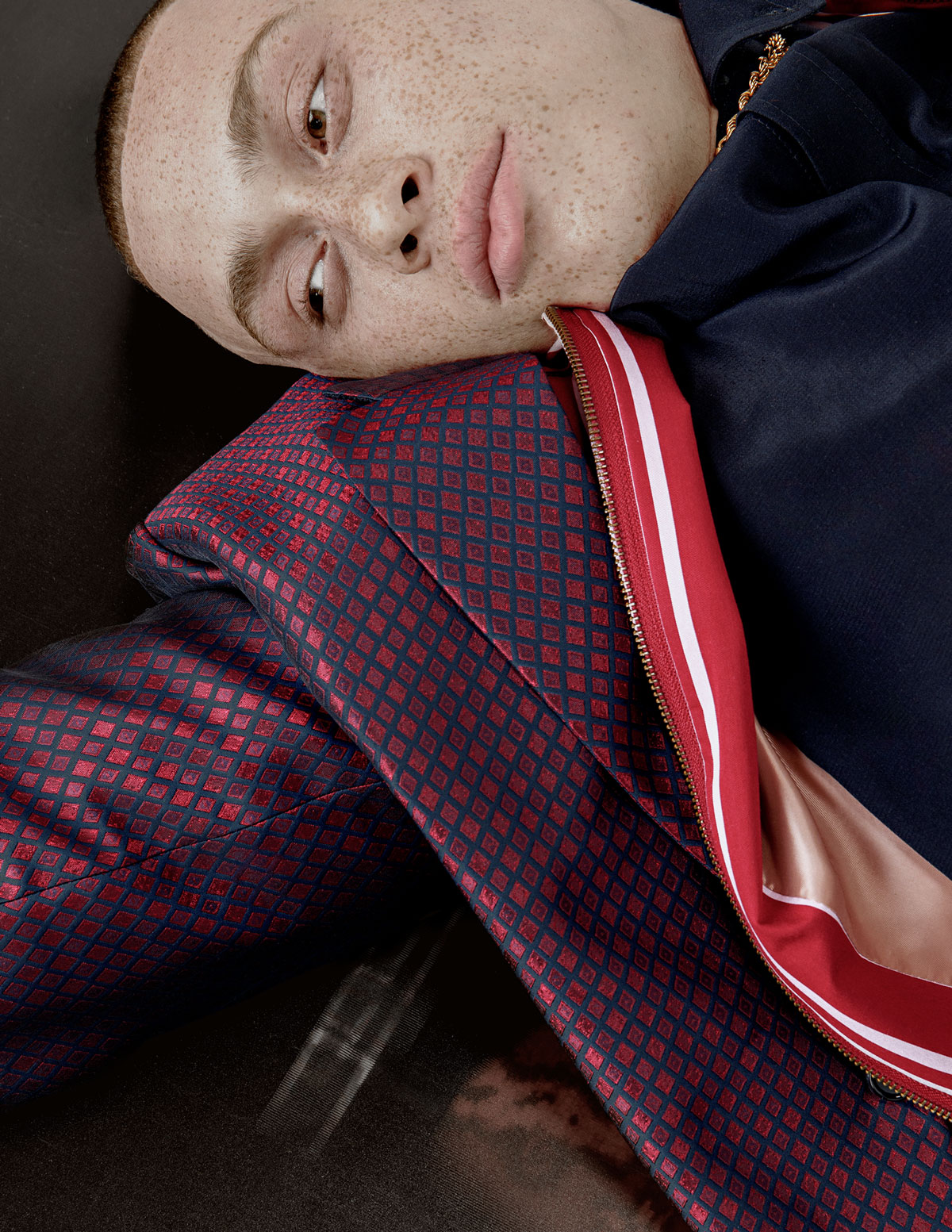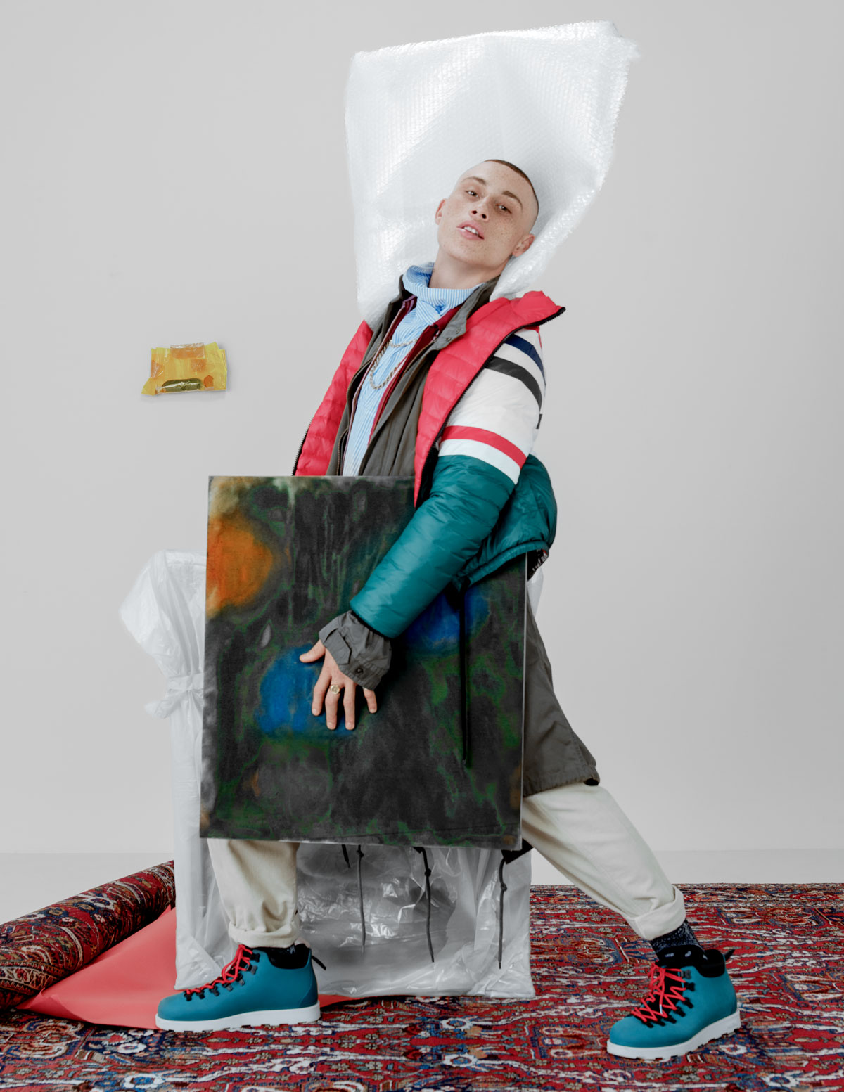 A KALTBLUT exclusive menswear editorial. Photography by Maxim Egorov. Model is Nicholas Sinclair at Modelwerk. The stylist is Anina Wolff. Makeup & hair by Meike Ewend. The set designer is Eduard Kiesmann.