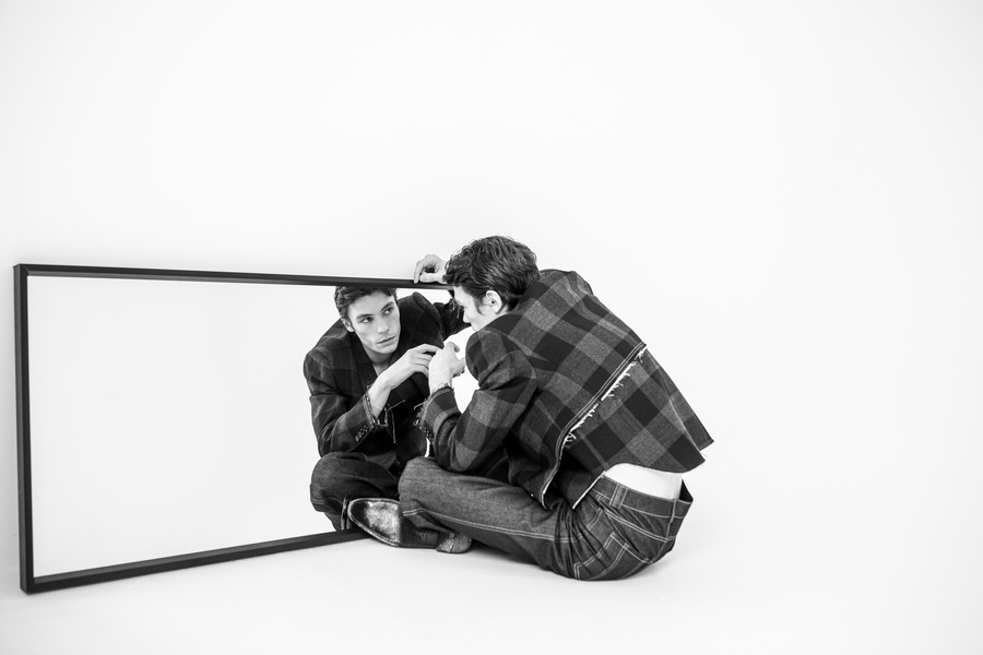 In the latest revelation of sartorial introspection, Kyle Ho’s Autumn/Winter 2024 assemblage dances with the cognitive shadows of egotism and the labyrinthine structures of narcissism. This is not just fashion; it’s an odyssey through the looking glass of the soul, a mirror reflecting the metamorphosis of self-worship from a seductive catalyst to an oppressive shroud.