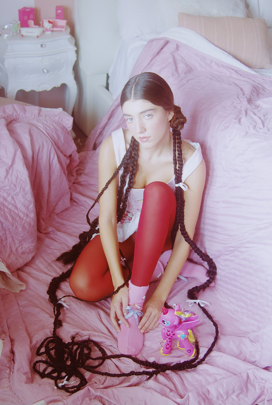 A KALTBLUT exclusive. Photography by Benedetta Pionati. The model is Beatrice Ianzi. Make Up by Edoardo De Falco. Hair Styling by Dario Jimmy D’Elia. Styling by Sara Ingenito using arura.it by Flavia Romano, Borriello Italia by Anna Borriello, Blumarine, Calzedonia, Carel Paris, Fendi, Fiorucci, Gant, Gap, Golden Goose, Lazy Oaf, and Wolford.