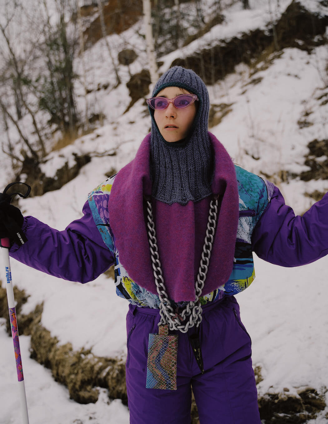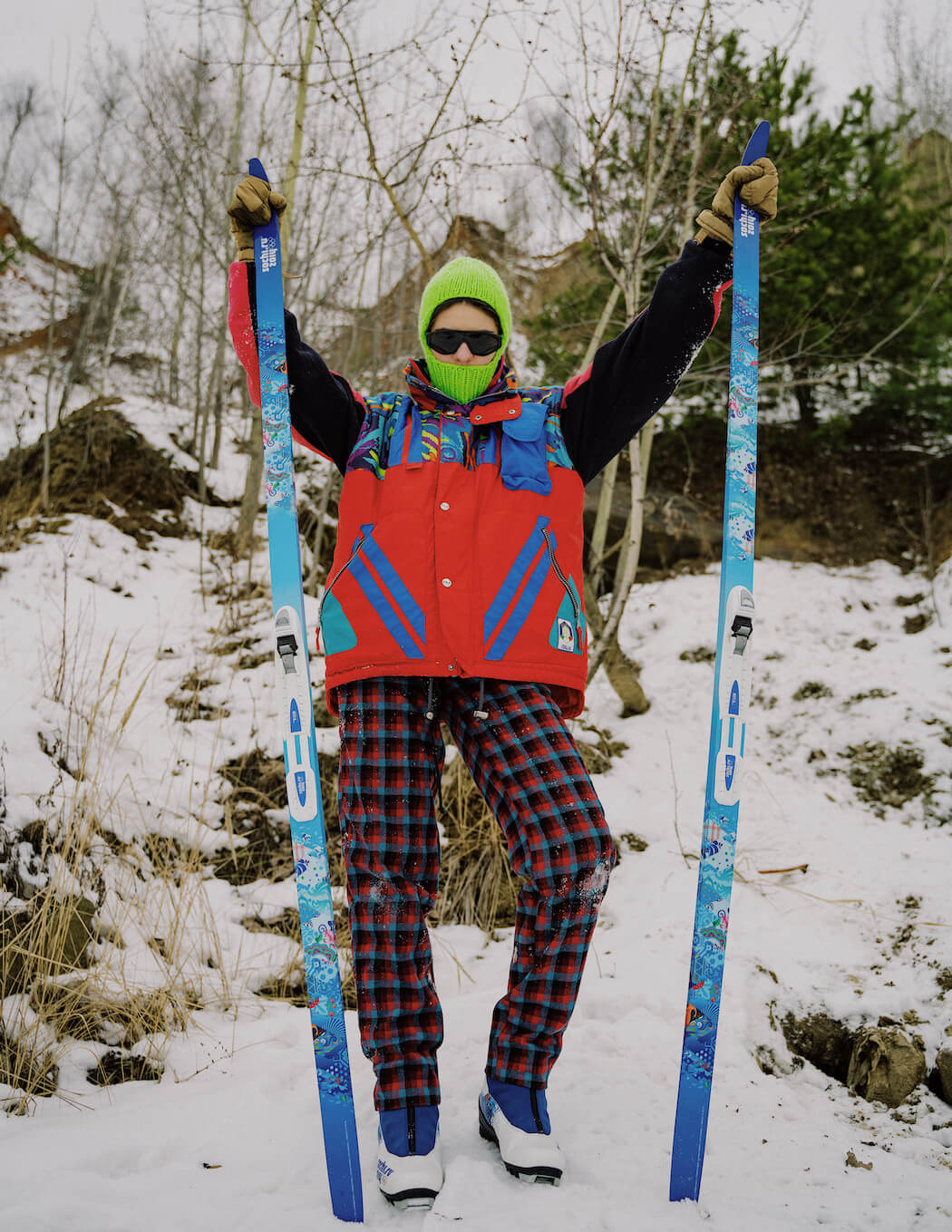 Bright, swirling colors. Psychedelic colors and natural materials. Balaclavas and bright geometric sunglasses and, of course, skis in the aggregate with wool sweaters – and it’s all about winter fashion in Russia.